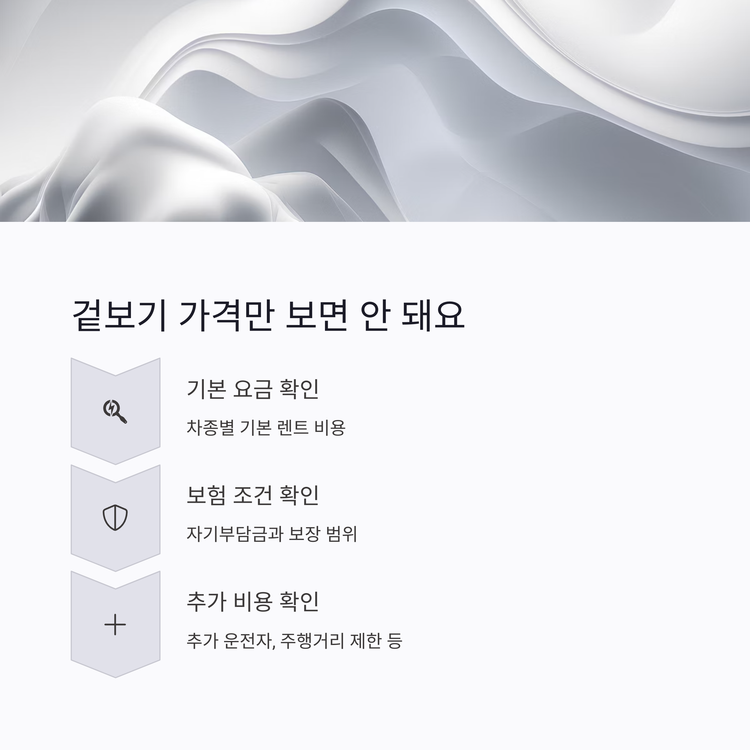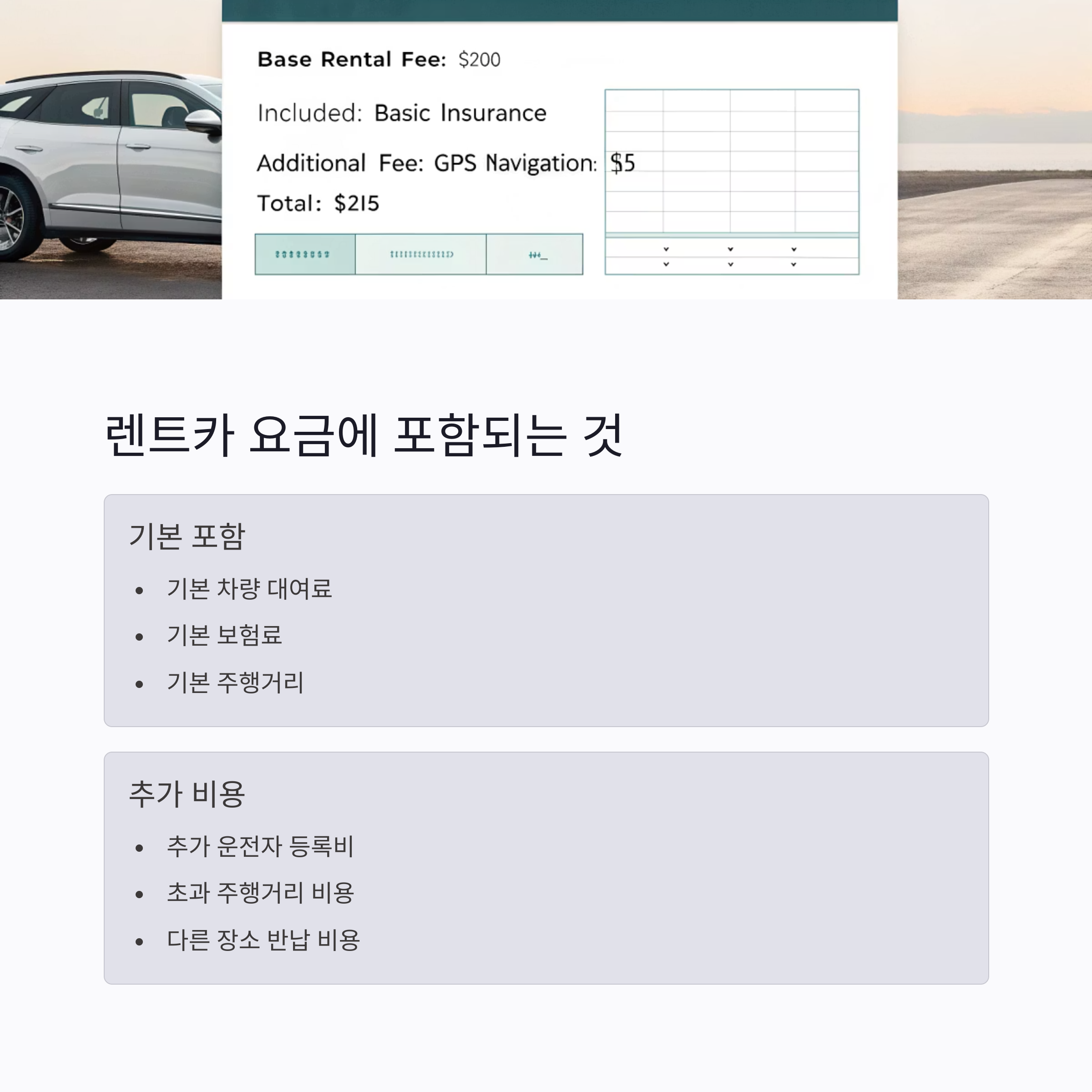 기본료 외에도 보험료, 거리제한, 반납 장소 등을 체크하세요.