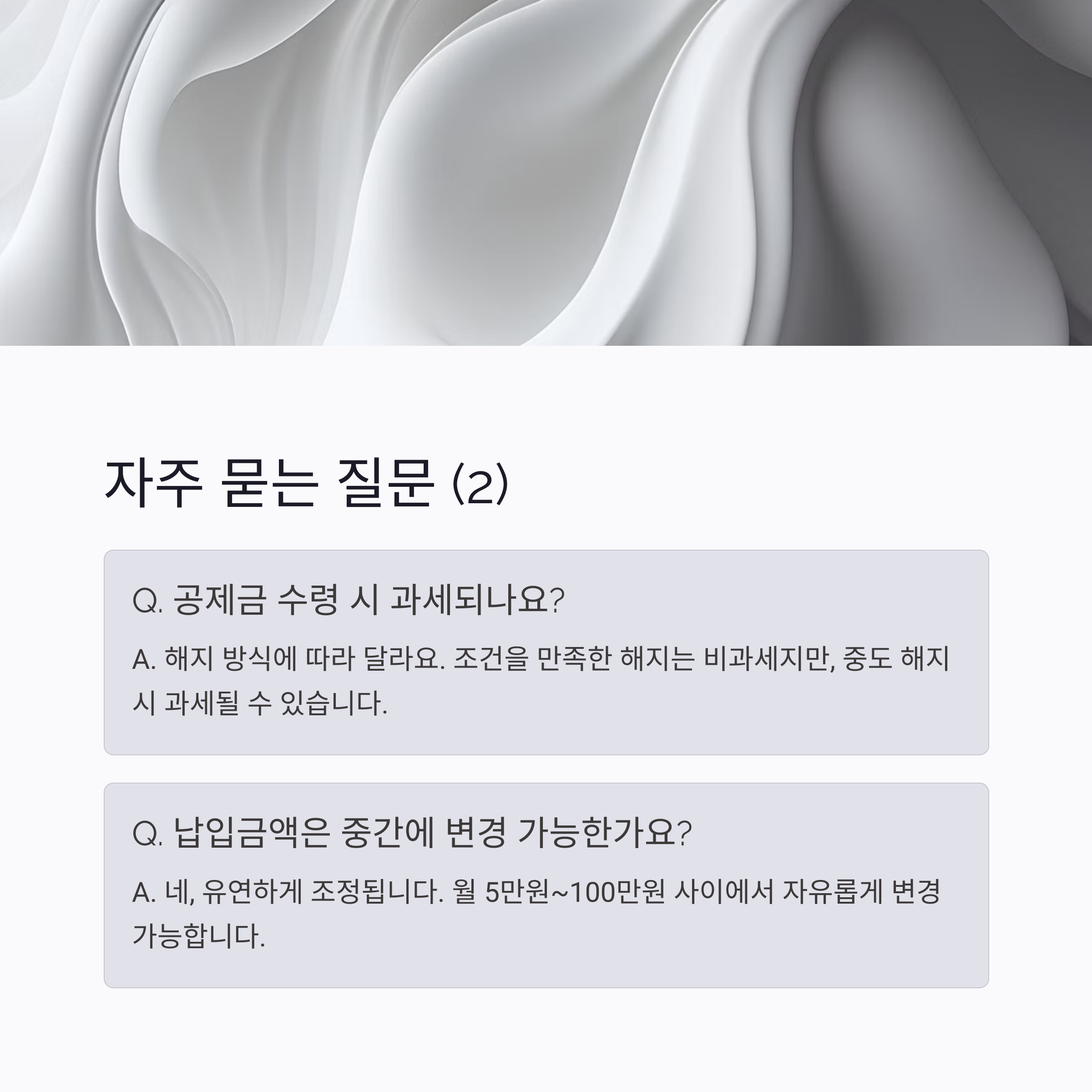 조건을 만족한 해지 시엔 세금이 없지만, 중도 해지 시엔 과세될 수 있으니 주의하세요.