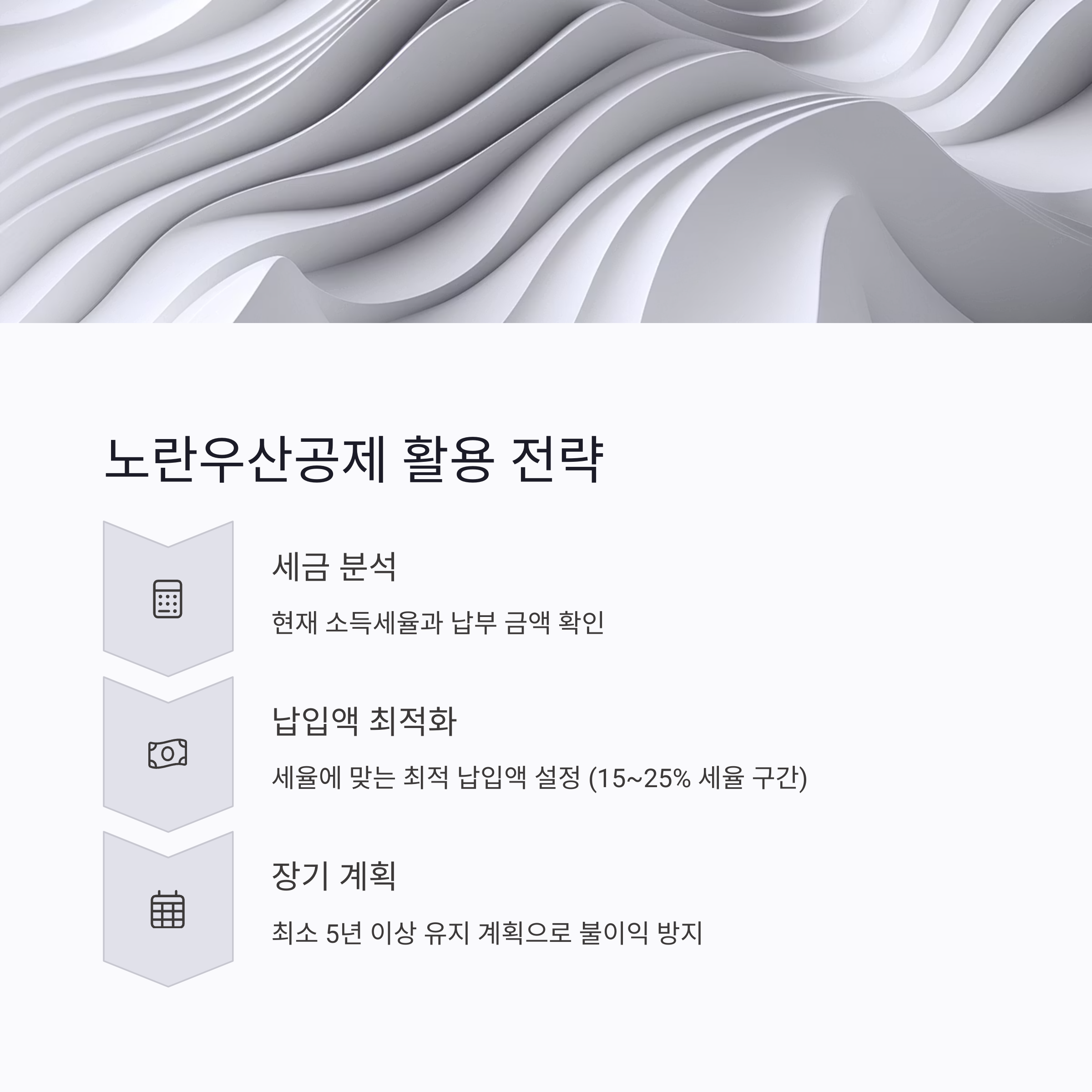 노란우산공제의 가장 큰 장점은 바로 전액 소득공제라는 점이에요. 연간 최대 500만원까지 공제받을 수 있는데, 이는 소득세 부담을 실질적으로 줄여주는 효과가 있죠. 아래는 납입 금액에 따른 예상 세액 절감 효과입니다.