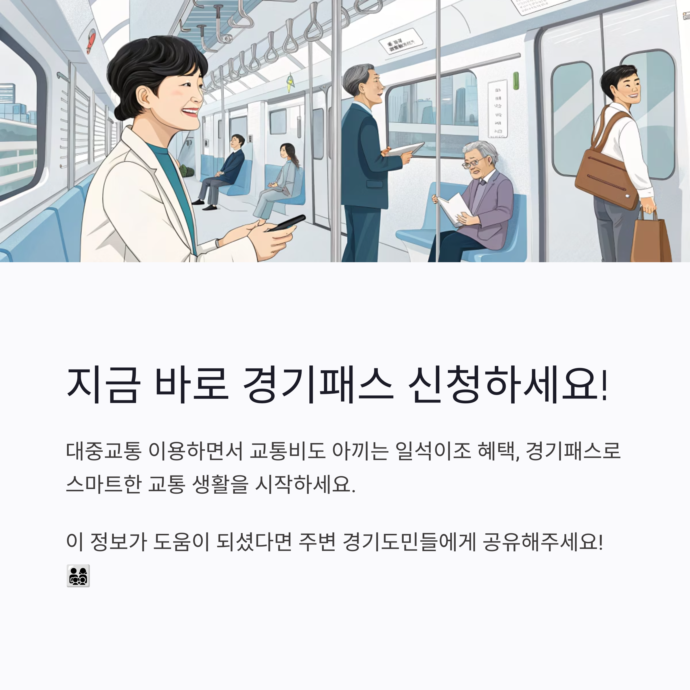 ๊ฒฝ๊ธฐํจ์ค๋ฅผ ํตํด ๋์ค๊ตํต ์ด์ฉ ์ ๊ตํต๋น๋ฅผ ์ ์ฝํ ์ ์๋ ๊ธฐํ๋ฅผ ๋์น์ง ๋ง์ธ์! ์ง๊ธ ๋ฐ๋ก ์ ์ฒญํ์ฌ ํํ์ ๋๋ ค๋ณด์๊ธฐ ๋ฐ๋๋๋ค.