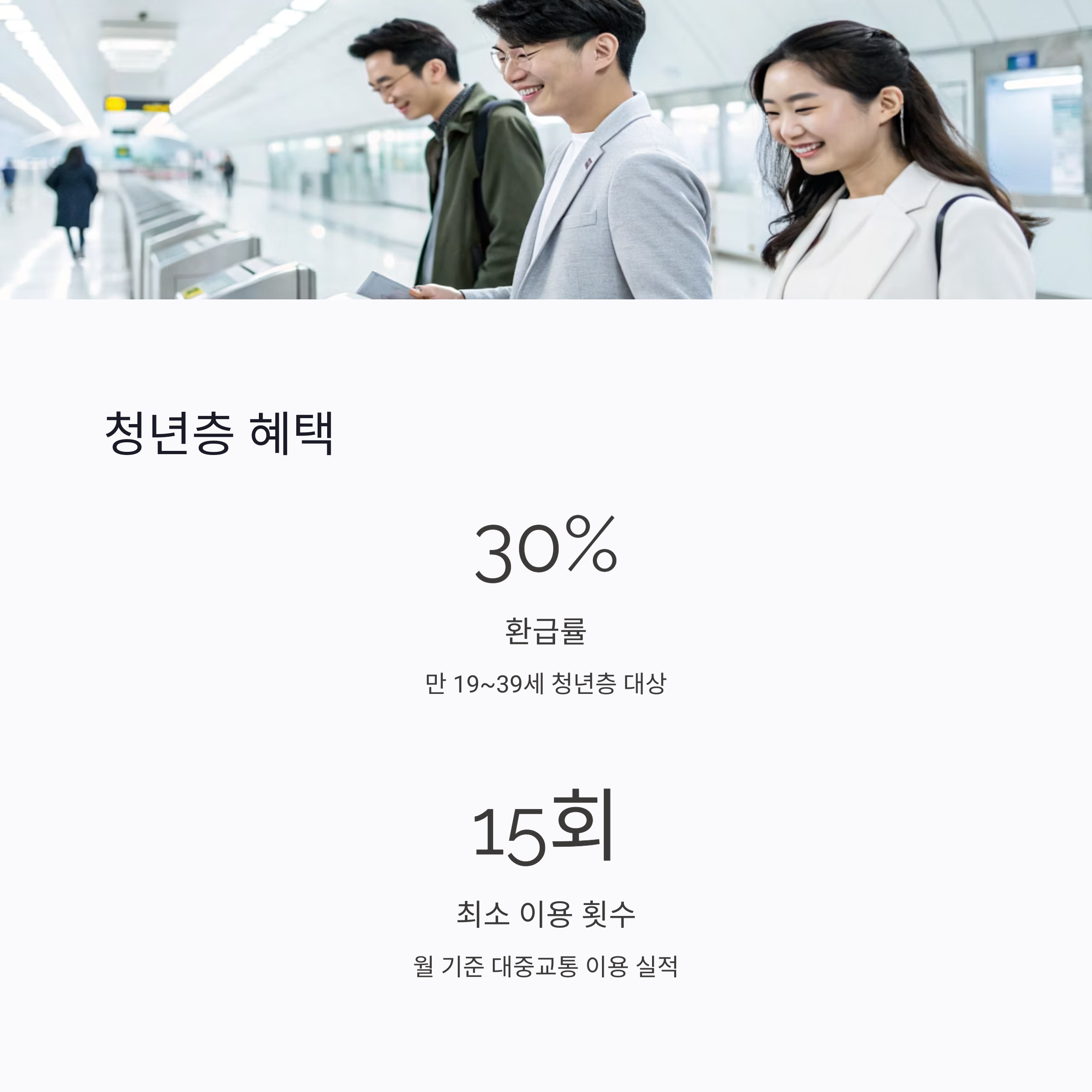 - ์ฒญ๋ ์ธต(๋ง 19~39์ธ): ๊ตํต๋น์ 30% ํ๊ธ