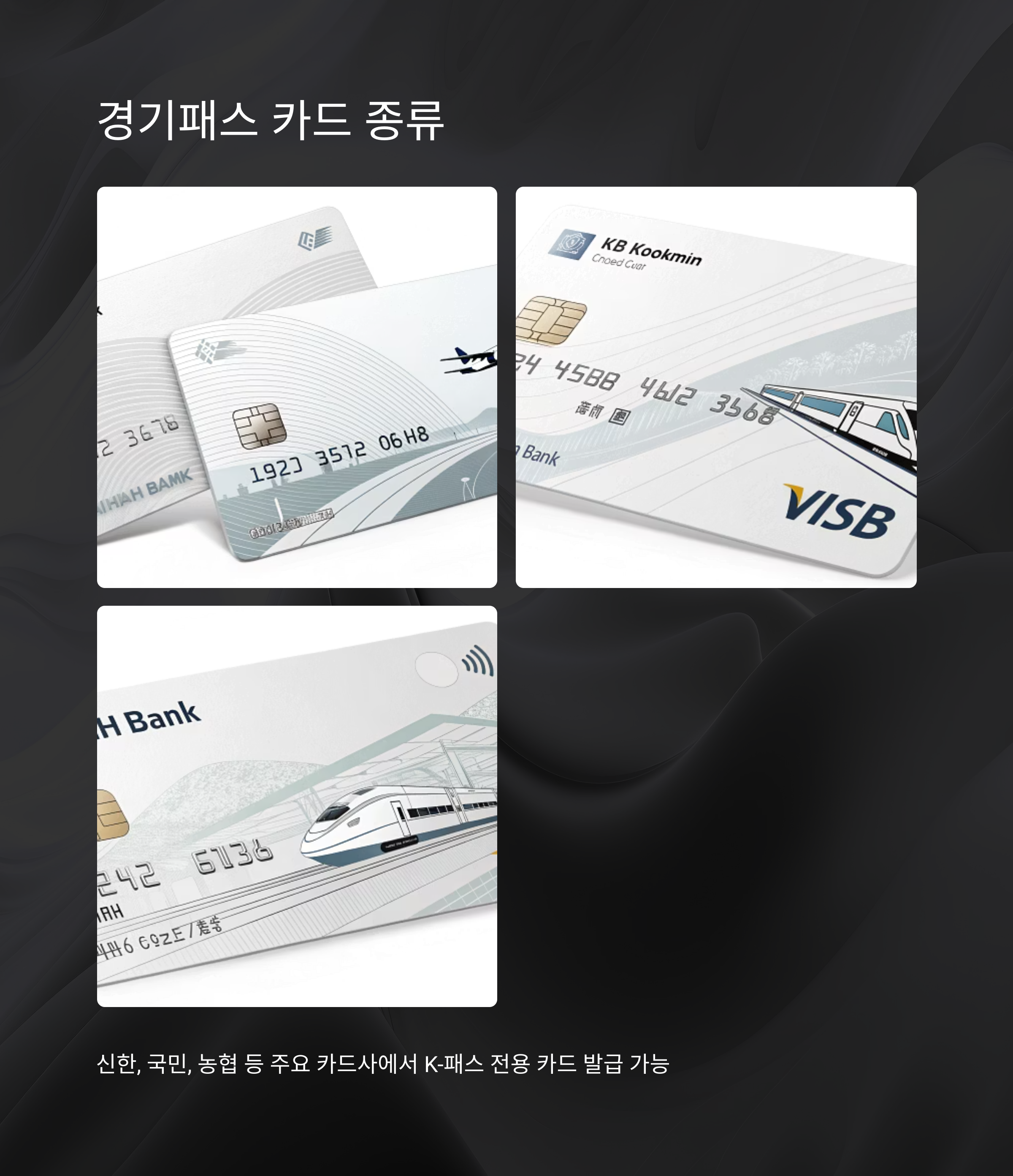 - ์นด๋ ๋ฐ๊ธ: ์ ํ, ๊ตญ๋ฏผ, ๋ํ ๋ฑ ์ฃผ์ ์นด๋์ฌ์์ K-ํจ์ค ์ ์ฉ ์นด๋๋ฅผ ๋ฐ๊ธ๋ฐ์ต๋๋ค.