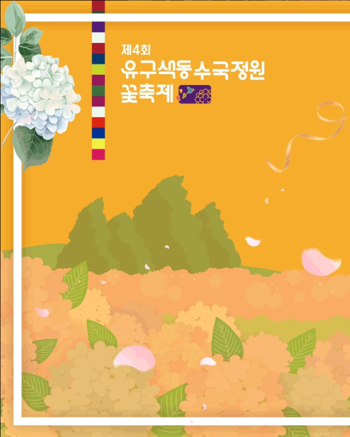 유구색동수국정원의 수국은 매년 6월 중순부터 7월 초순까지 절정을 이룹니다. 연보라, 핑크, 하늘색, 청보라 등 다양한 색감의 수국이 서로 겹치며 수채화 같은 풍경을 만들어줘요.