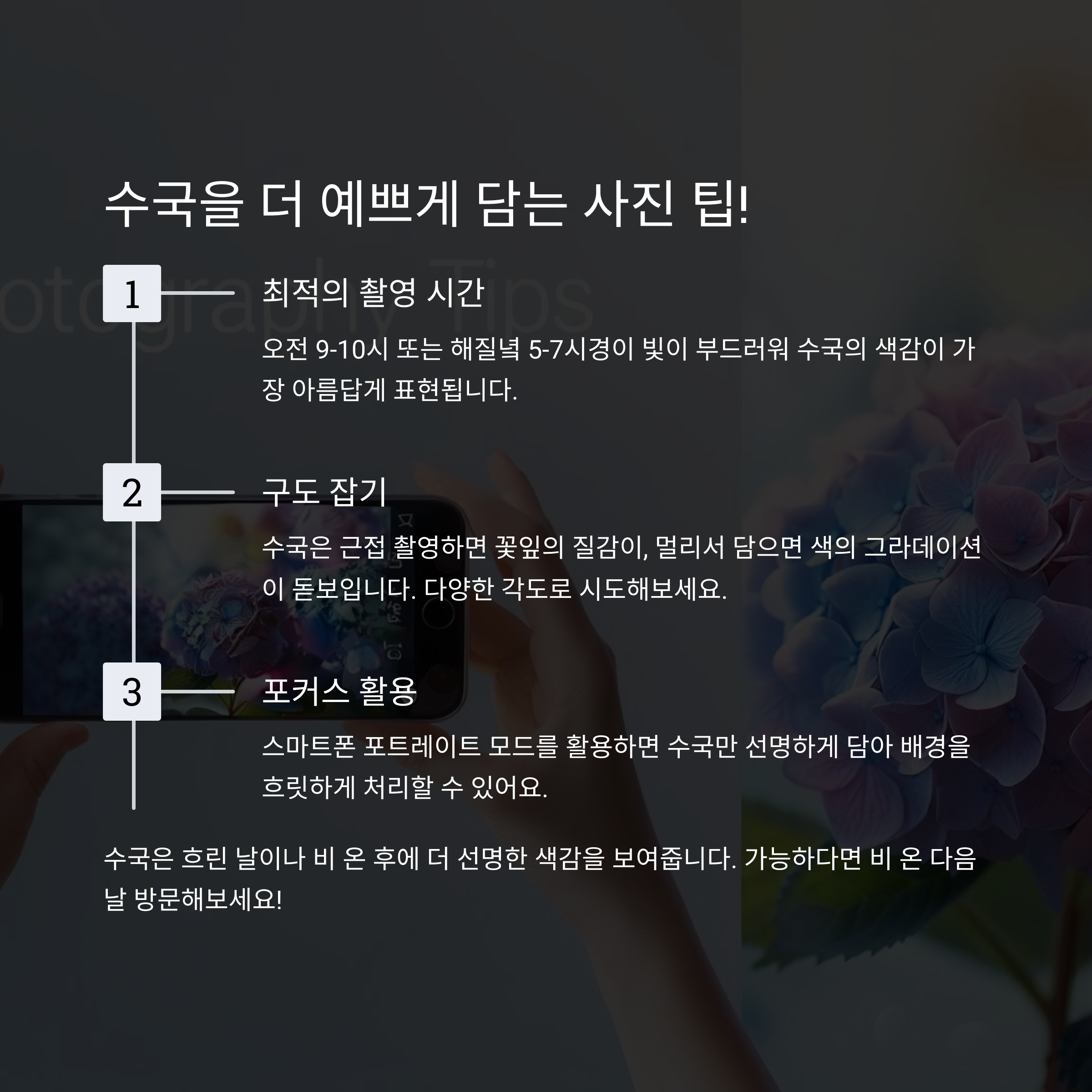 - 우산이나 양산과 함께 수국 사이 걷기 체험 추천