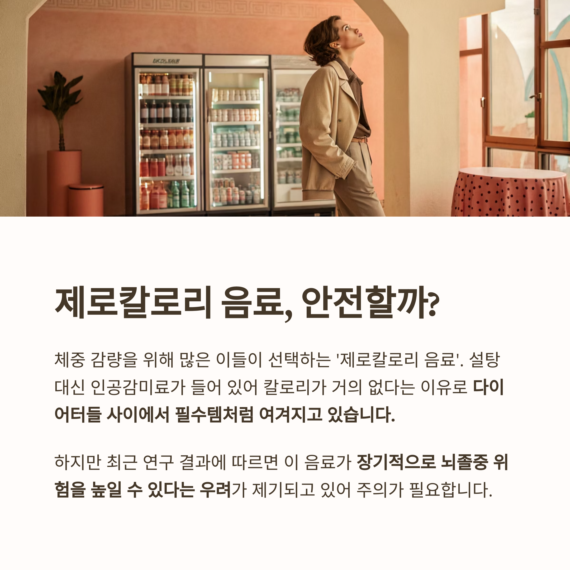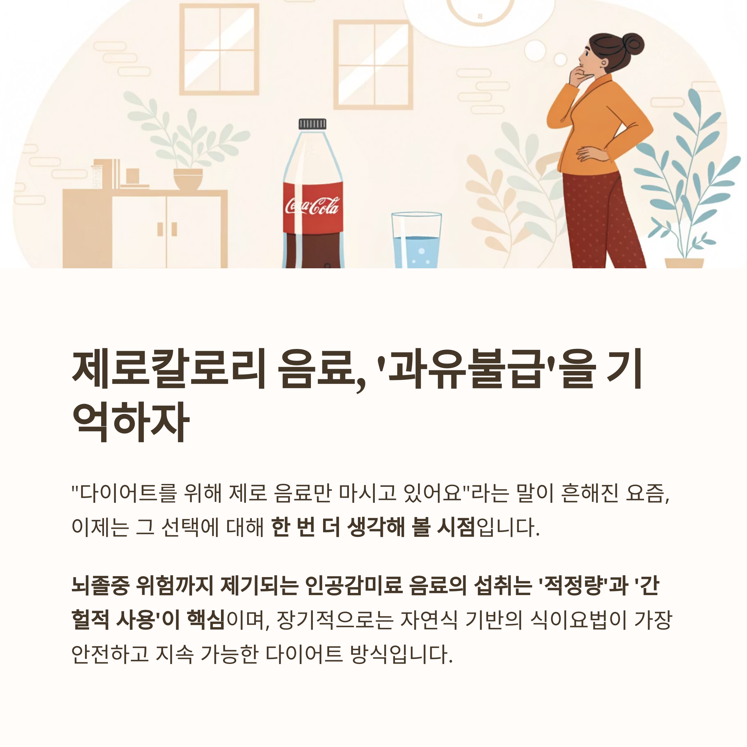 뇌졸중 위험까지 제기되는 인공감미료 음료의 섭취는 '적정량'과 '간헐적 사용'이 핵심이며,