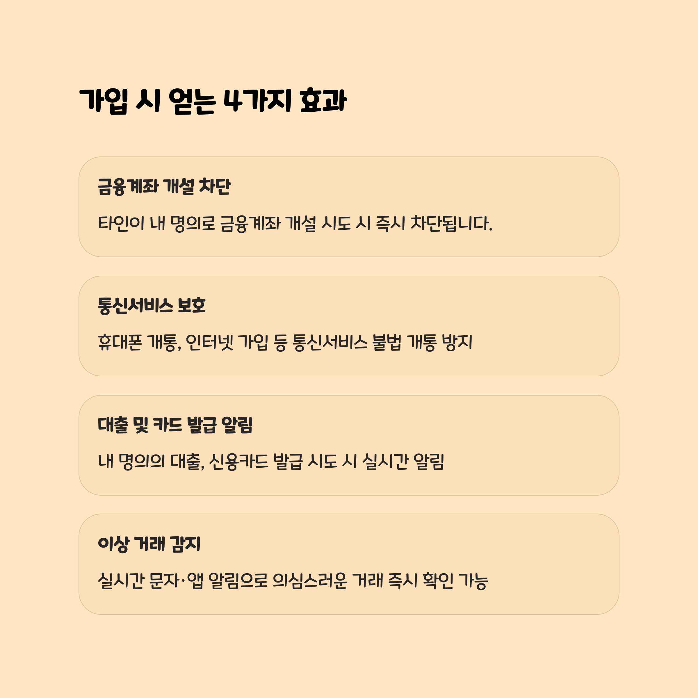 - 타인이 내 명의로 금융계좌 개설 시도 시 차단