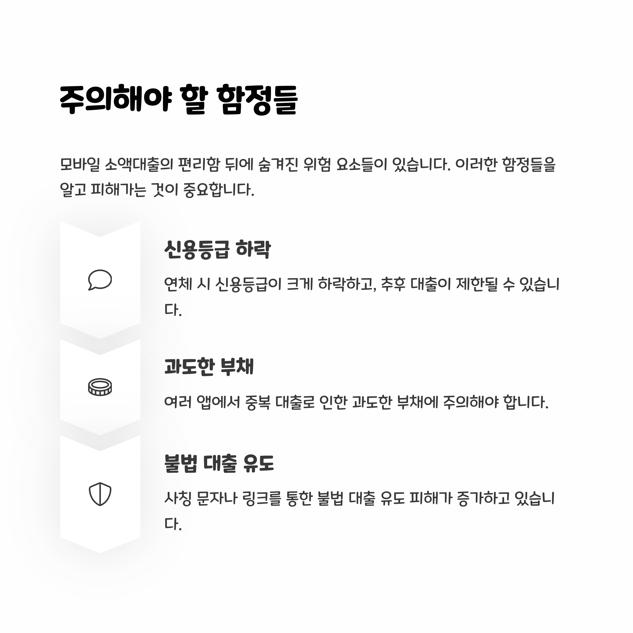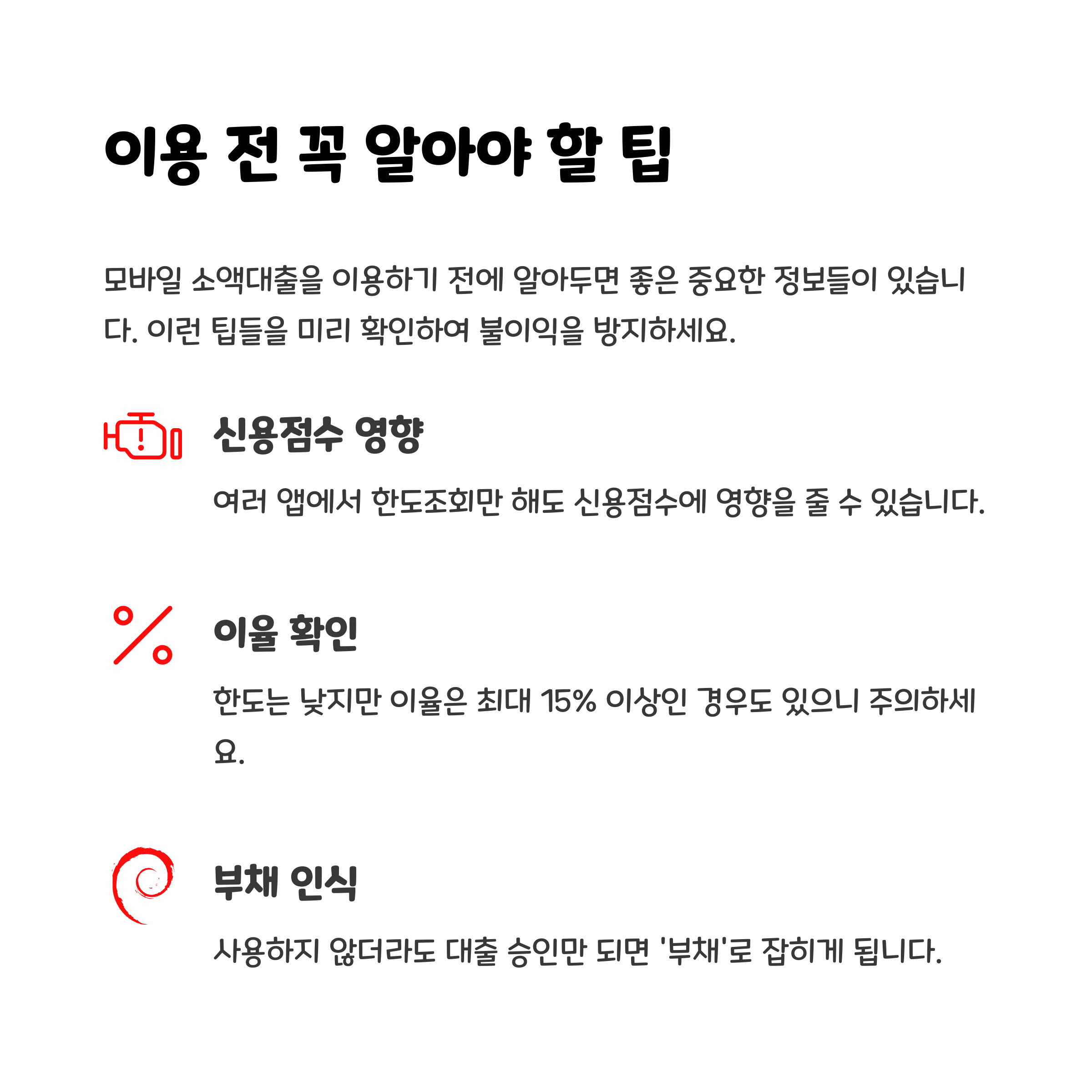 - 대출 중복으로 인한 과도한 부채 주의