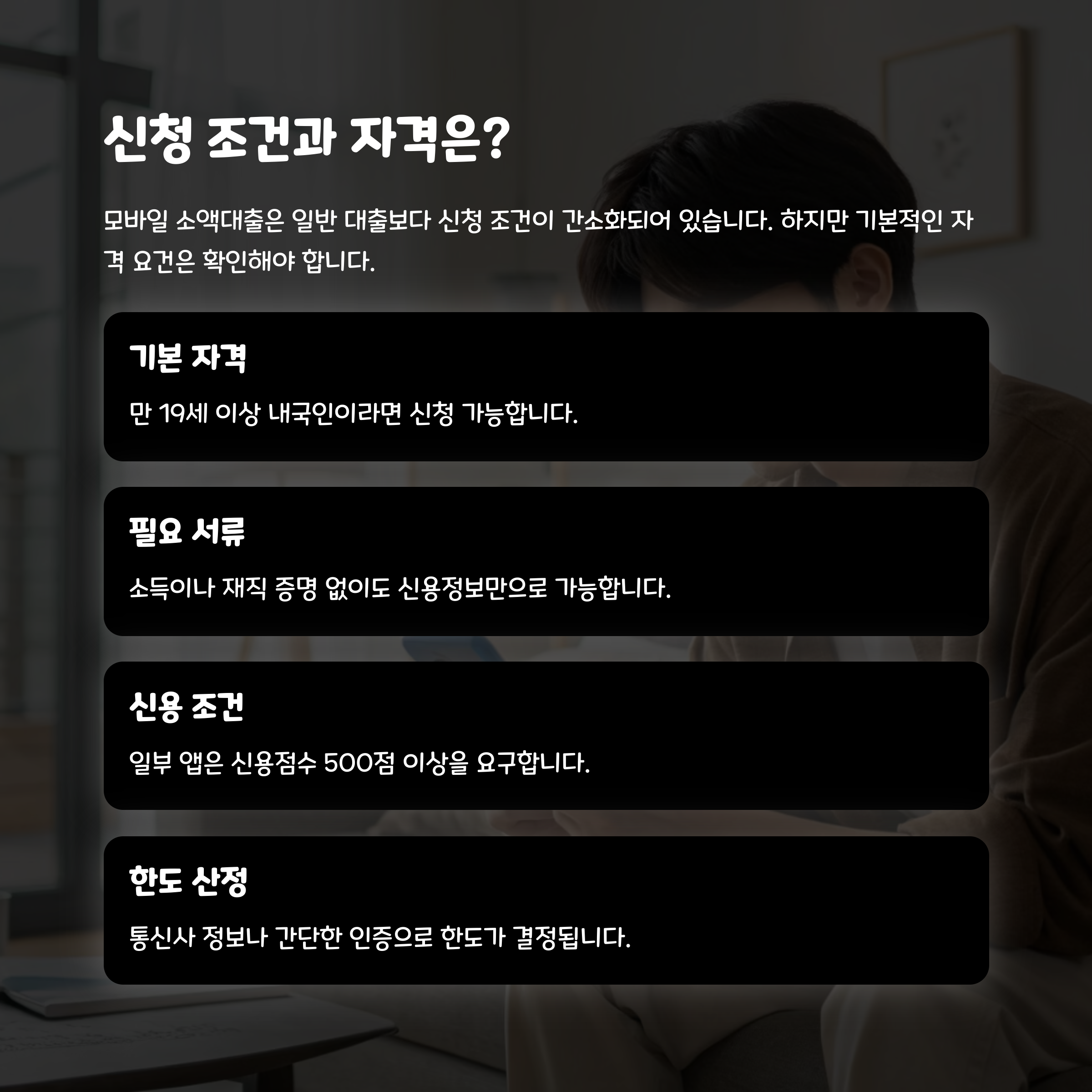 - 소득이나 재직 증명 없이도 신용정보만으로 가능