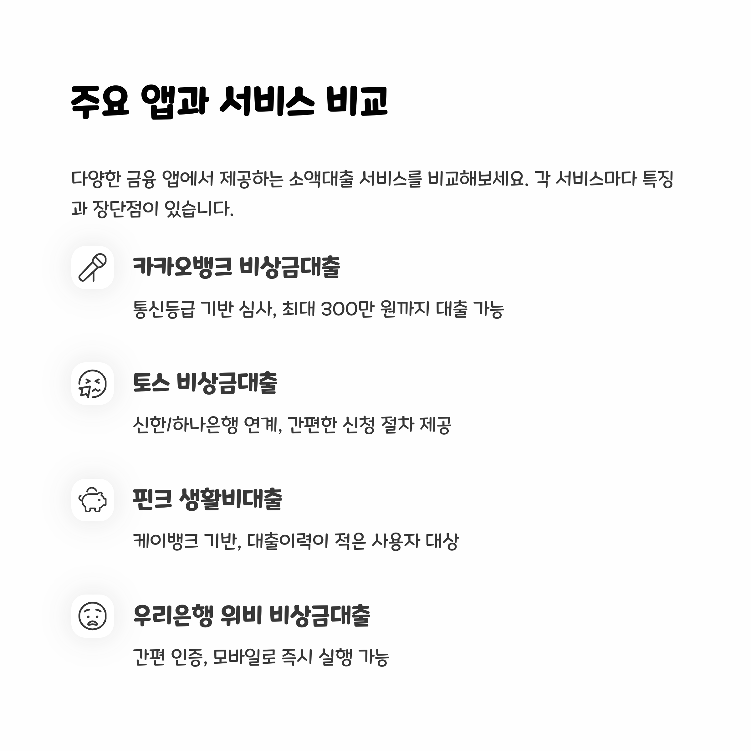- 핀크 생활비대출: 케이뱅크 기반, 대출이력 적은 사용자 대상