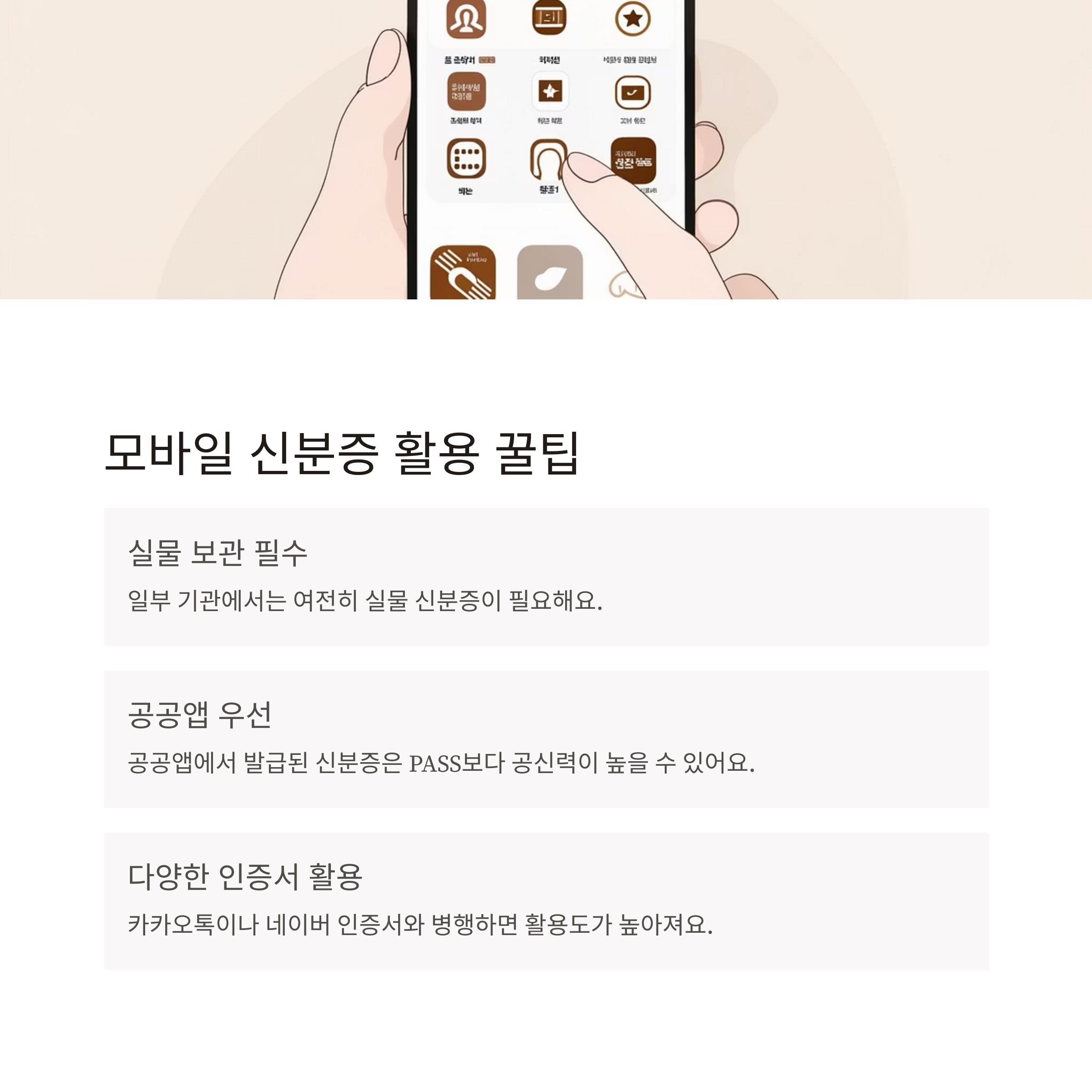 - 신분증 실물은 꼭 보관하세요. 일부 기관에서는 여전히 필요합니다.