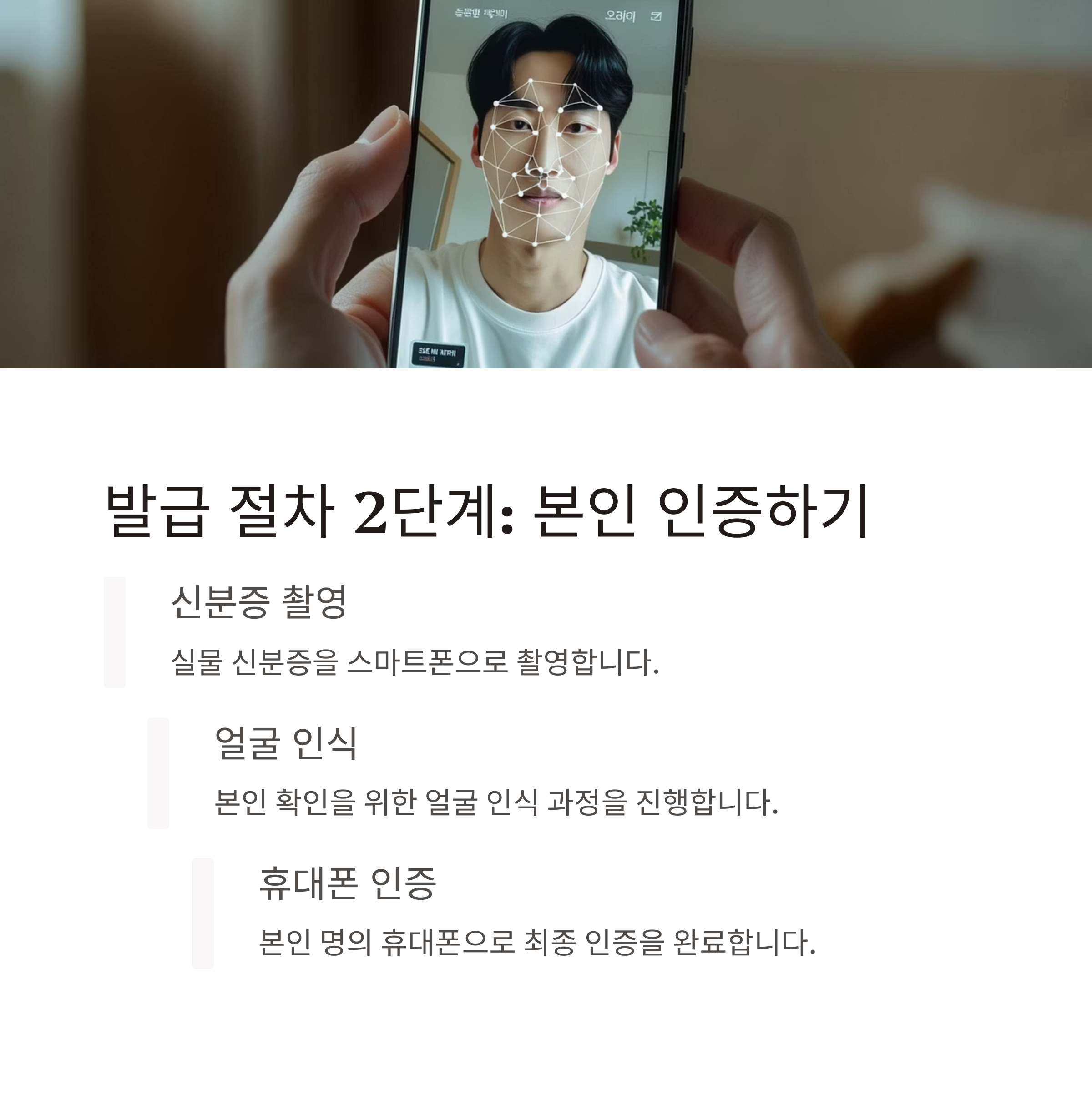 - 신분증 실물 촬영 및 얼굴 인식 등록