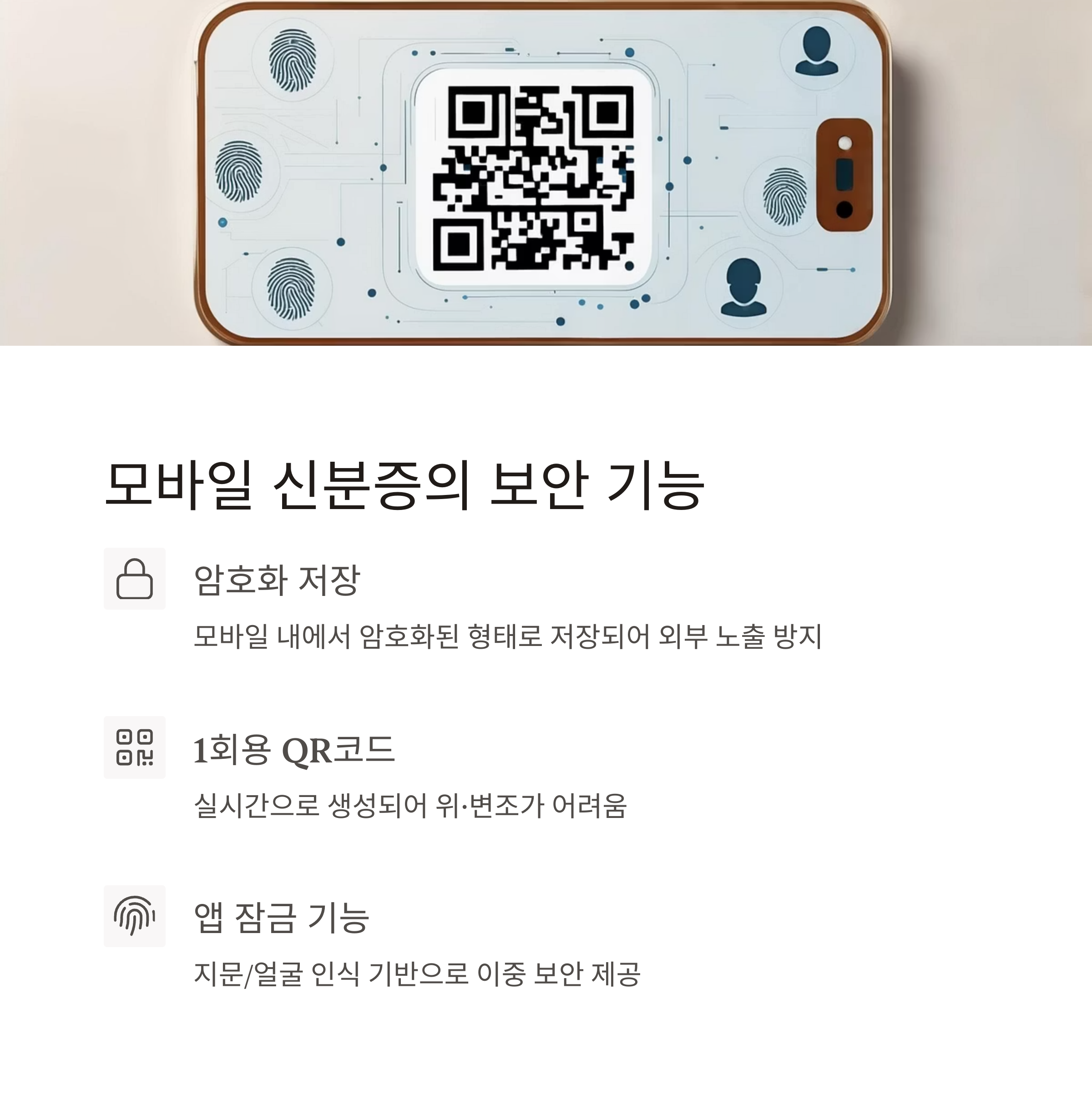 | 1회용 QR코드 | 실시간으로 생성되어 위·변조가 어려움 |