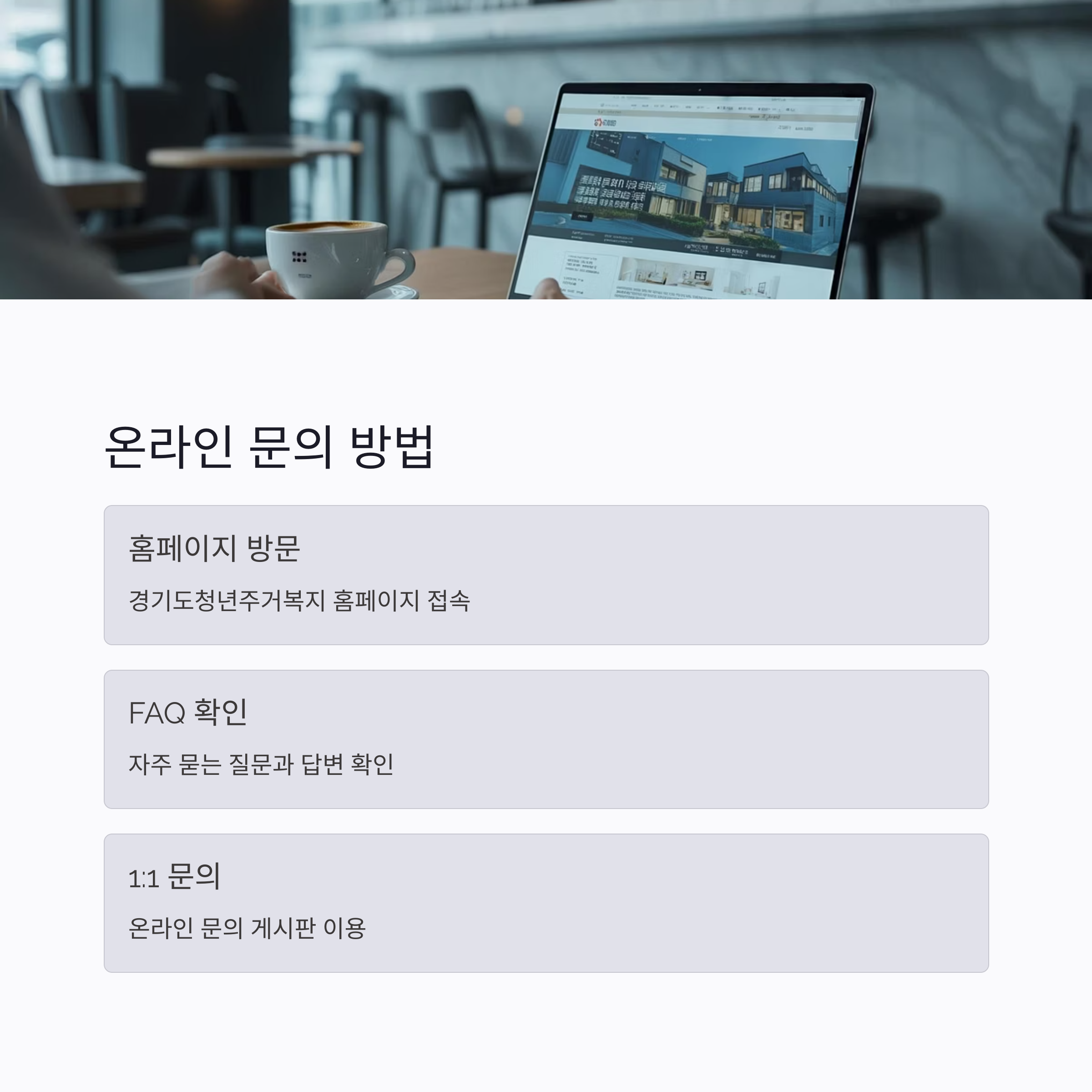 ๊ฒฝ๊ธฐ๋์ฒญ๋ ์ฃผ๊ฑฐ๋ณต์ง ํฌํธ ๋ฐฉ๋ฌธ → FAQ / 1:1 ๋ฌธ์ ๊ฐ๋ฅ
