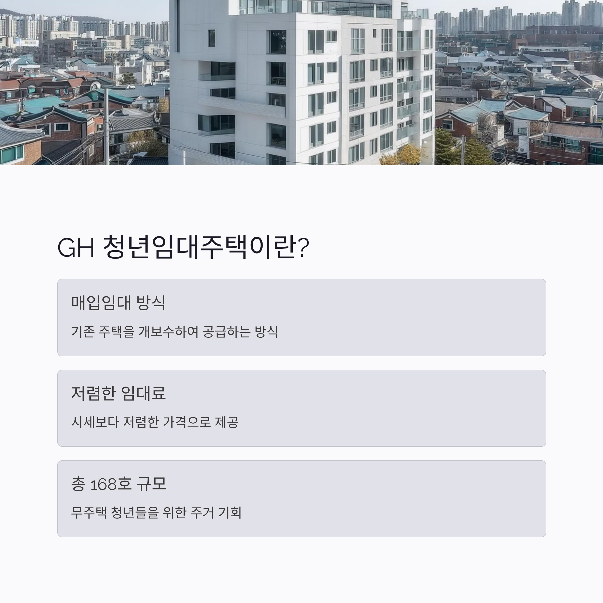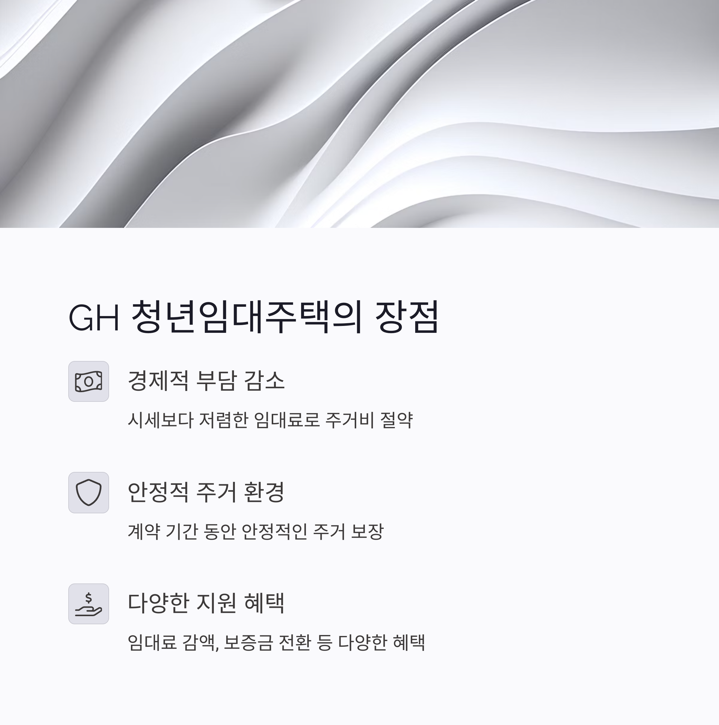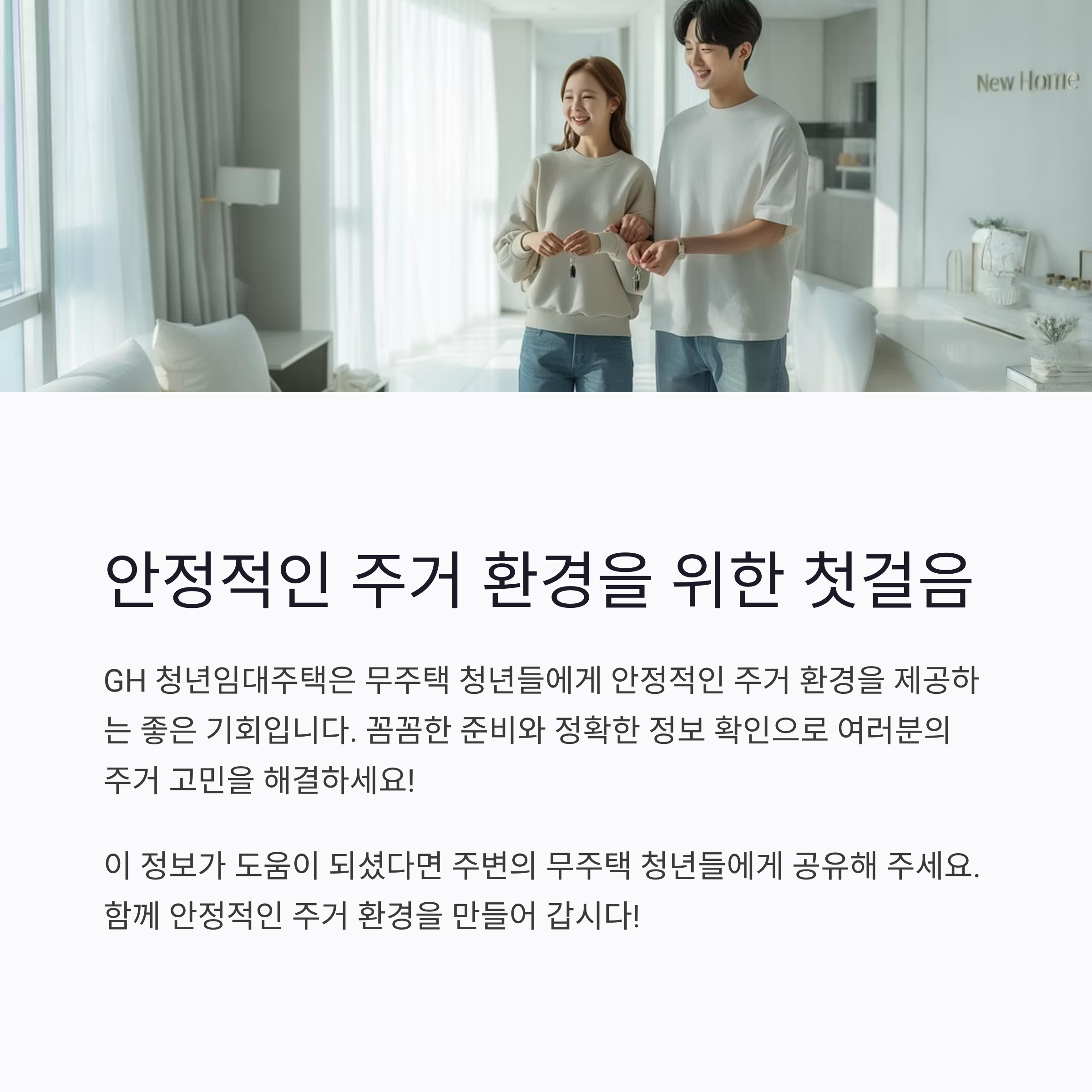 GH ์ฒญ๋ ์๋์ฃผํ์ ์์ ์ ์ธ ๋ฏธ๋๋ฅผ ์ํ ์ฒซ๊ฑธ์์ ๋๋ค. ์ง๊ธ ๋ฐ๋ก ์๊ฒฉ ํ์ธํ๊ณ ์ ์ฒญ ์ค๋น๋ฅผ ์์ํ์ธ์!