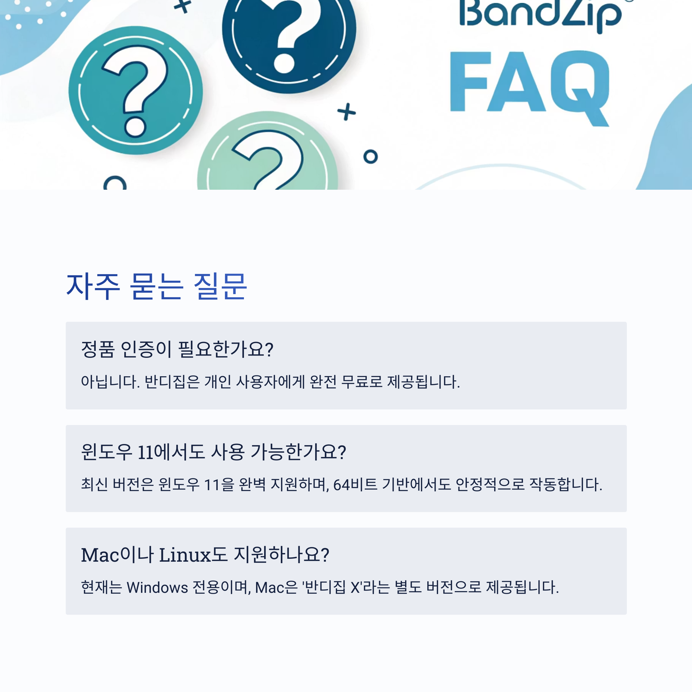 → 현재는 Windows 전용이며, Mac은 '반디집 X'라는 별도 버전으로 제공됩니다.