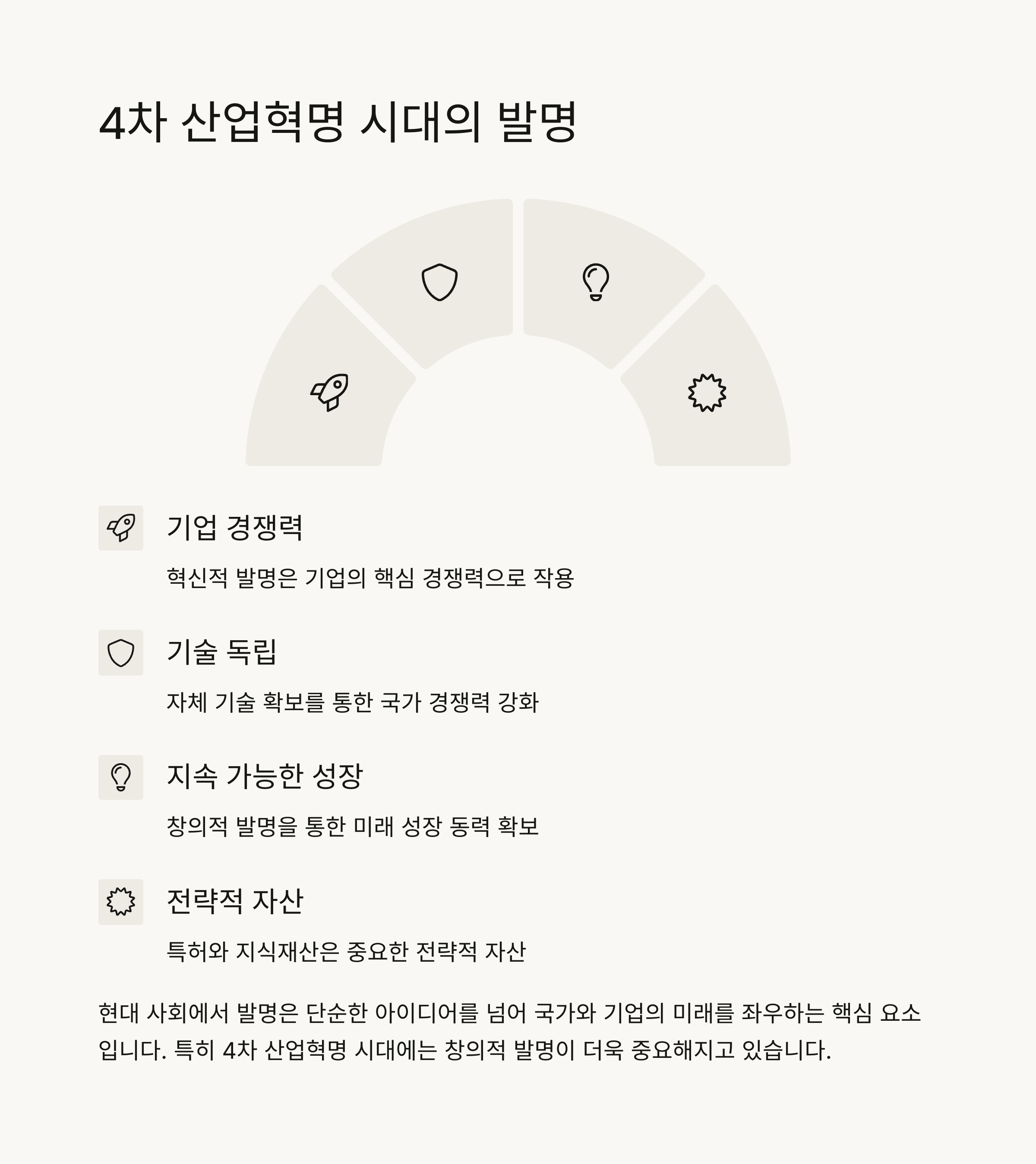 4차 산업혁명 시대에 발명은 기업 경쟁력과 직결됩니다. 지속 가능한 성장과 기술 독립을 위해, 특허와 지식재산은 전략적 자산으로 관리돼야 합니다.