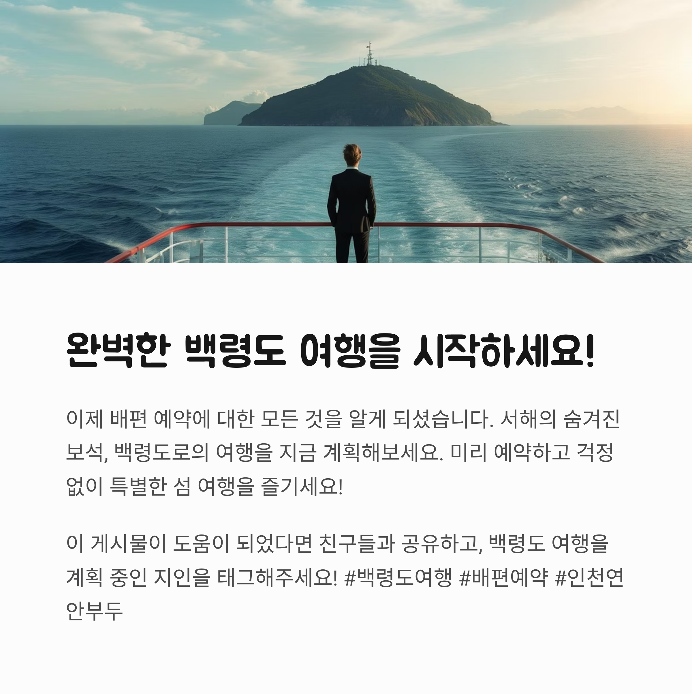 백령도는 자연이 주는 감동을 온전히 느낄 수 있는 특별한 장소예요. 하지만 접근성이 제한적인 만큼, 배편 예약은 여행 계획에서 가장 중요한 부분이라 할 수 있어요. 이번 글을 통해 누구나 쉽게 예약하고 여유롭게 여행을 즐기셨으면 좋겠습니다. 여러분의 백령도 여행이 행복한 기억으로 남기를 진심으로 바랍니다.