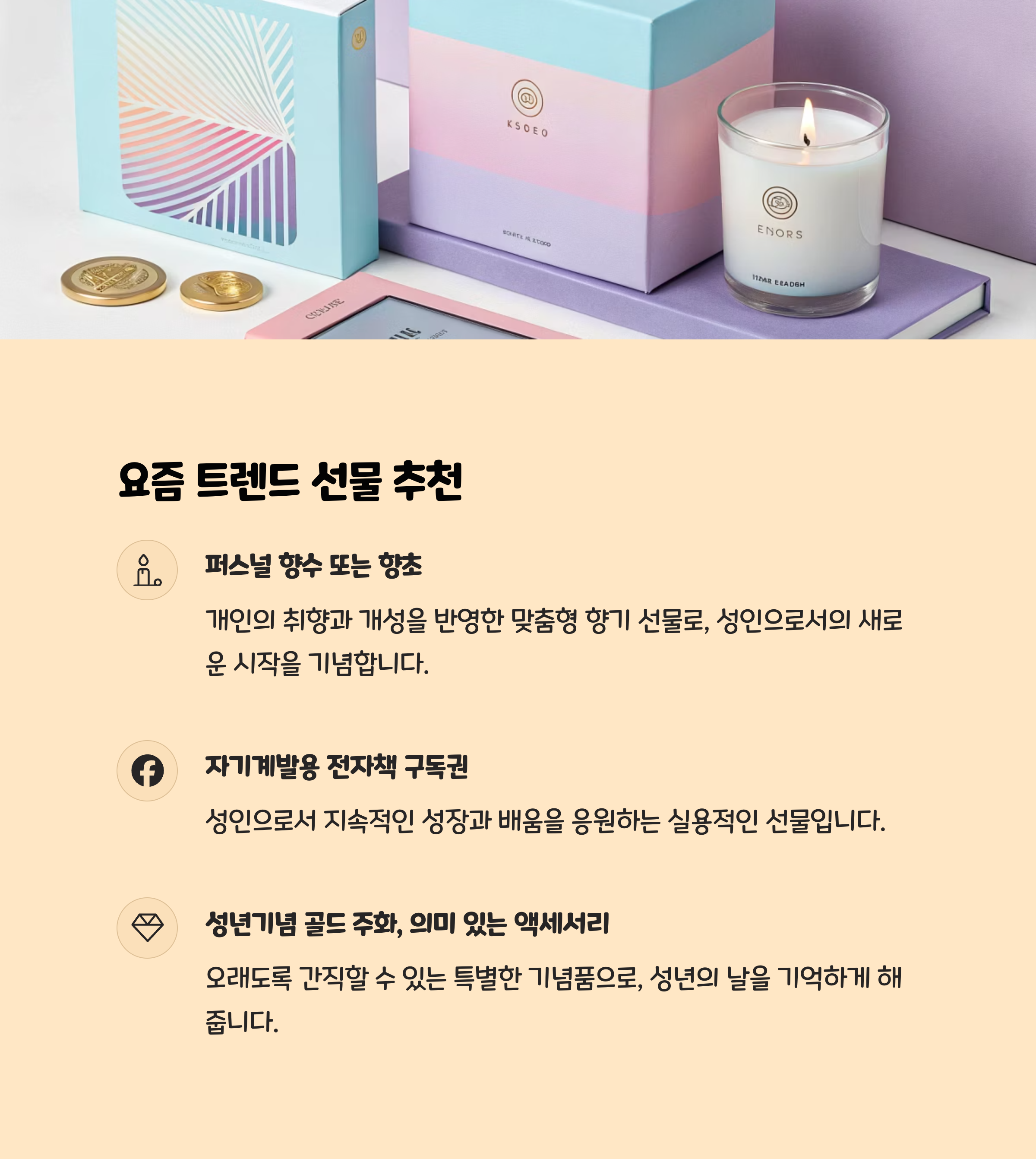 향초, 구독권, 의미 있는 골드 아이템 추천!