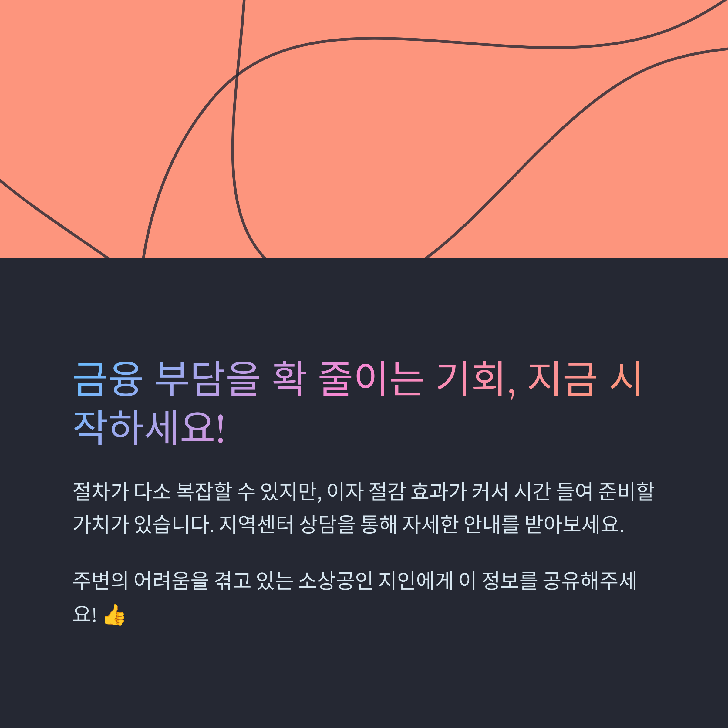 - 월 납입 부담 감소 – 대출 이자 부담 완화로 사업 운영 자금 여유 확보