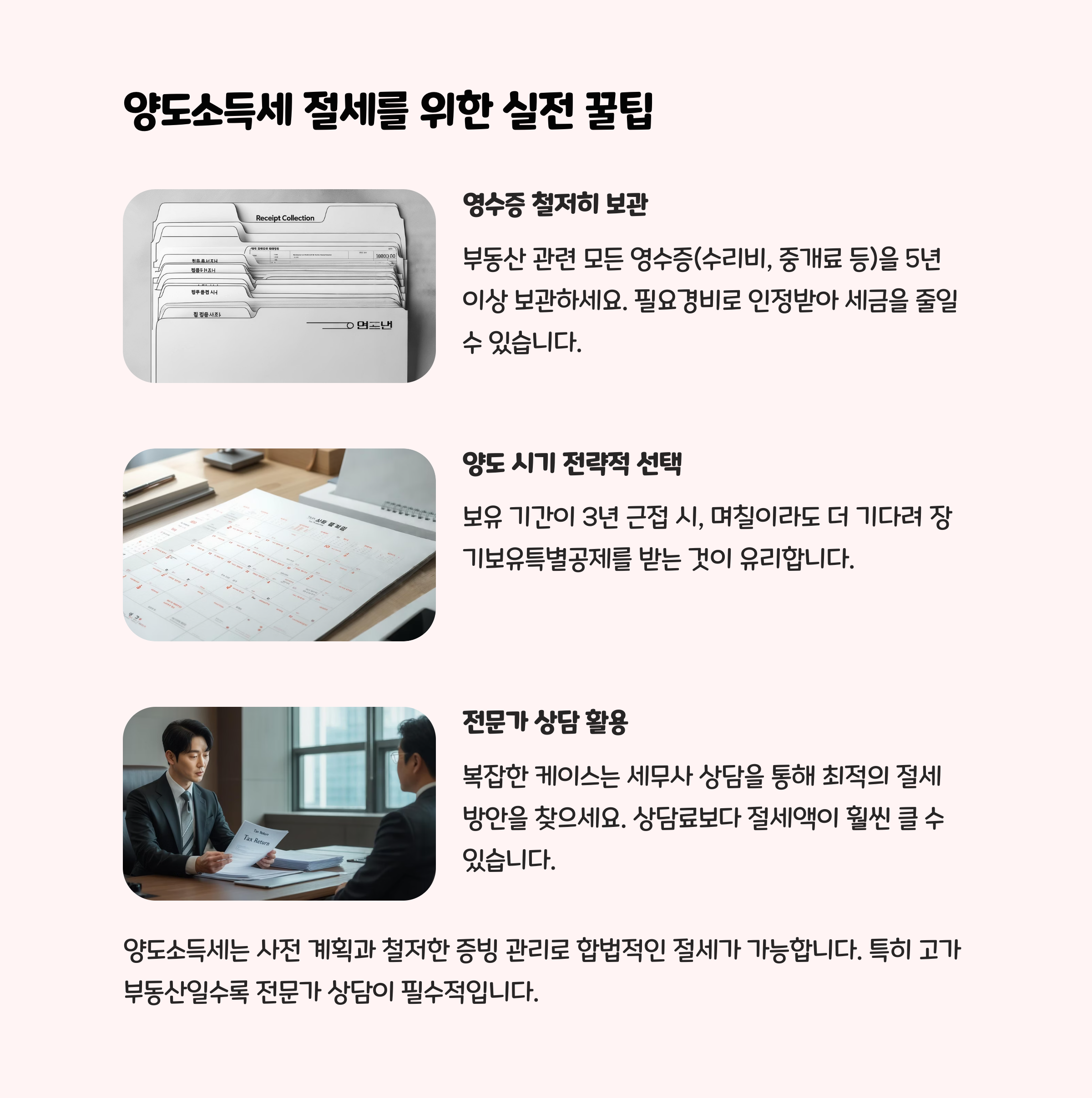 | 필요경비 공제 | 중개수수료, 리모델링, 양도세 신고 수수료 등 |