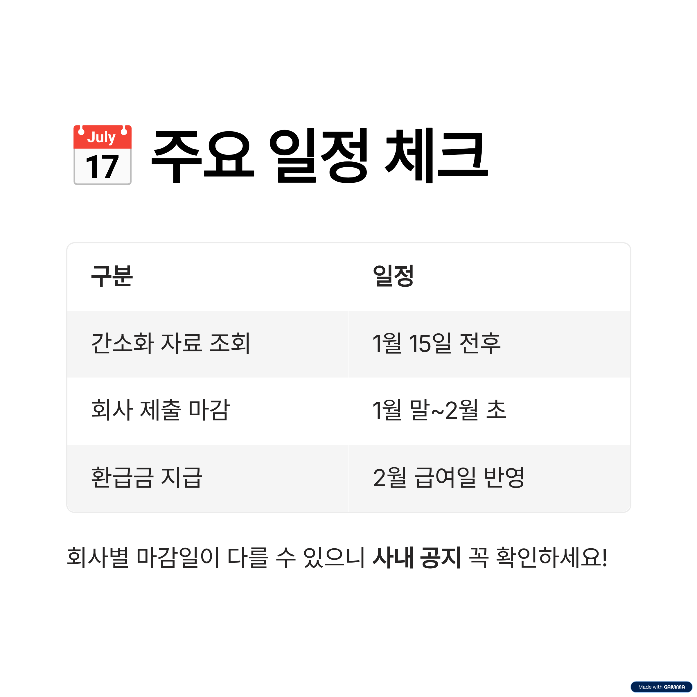 회사별로 마감일이 다를 수 있으니 사내 공지 꼭 확인해 주세요.