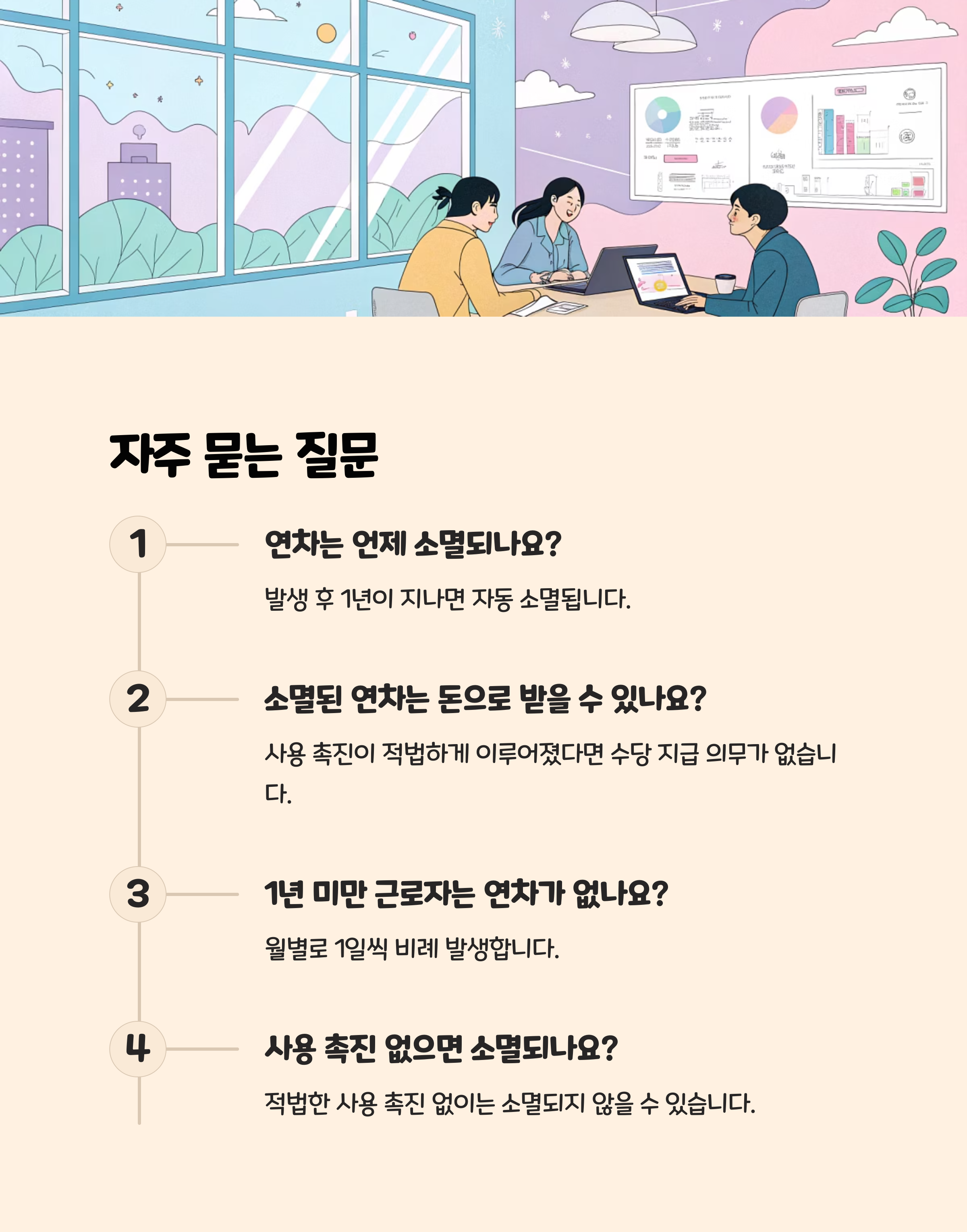 오늘은 연차 소멸 기준에 대해 자세히 알아보았어요.