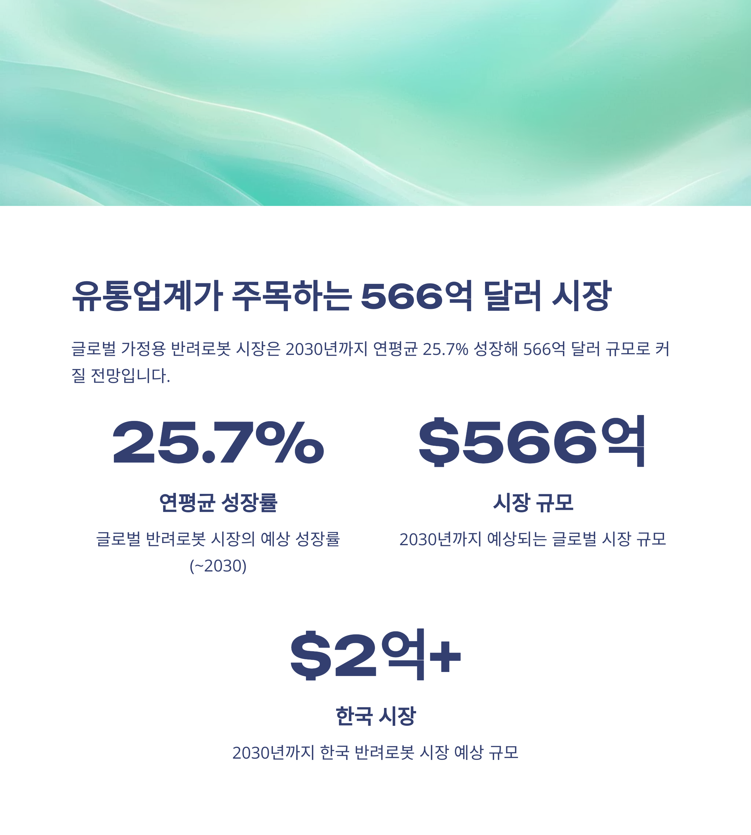 글로벌 가정용 반려로봇 시장은 2030년까지 연평균 25.7% 성장할 것으로 예상되며, 무려 566억 달러 규모로 커질 전망이에요. 한국 시장도 2024년 8260만 달러에서 2030년 2억 달러 이상으로 확대될 것으로 보여요.