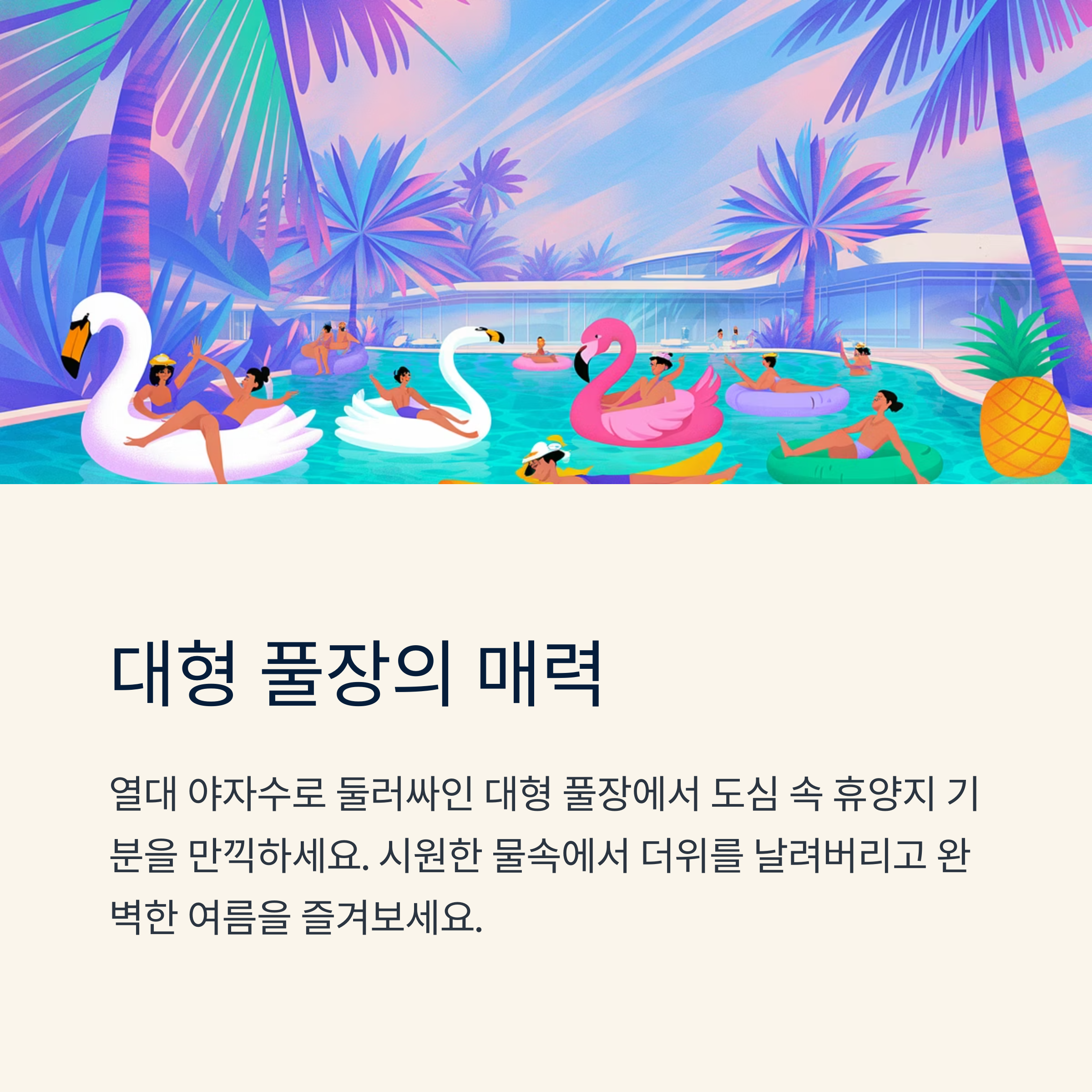 - 대형 풀장: 열대 야자수 아래에서 수영하며 힐링