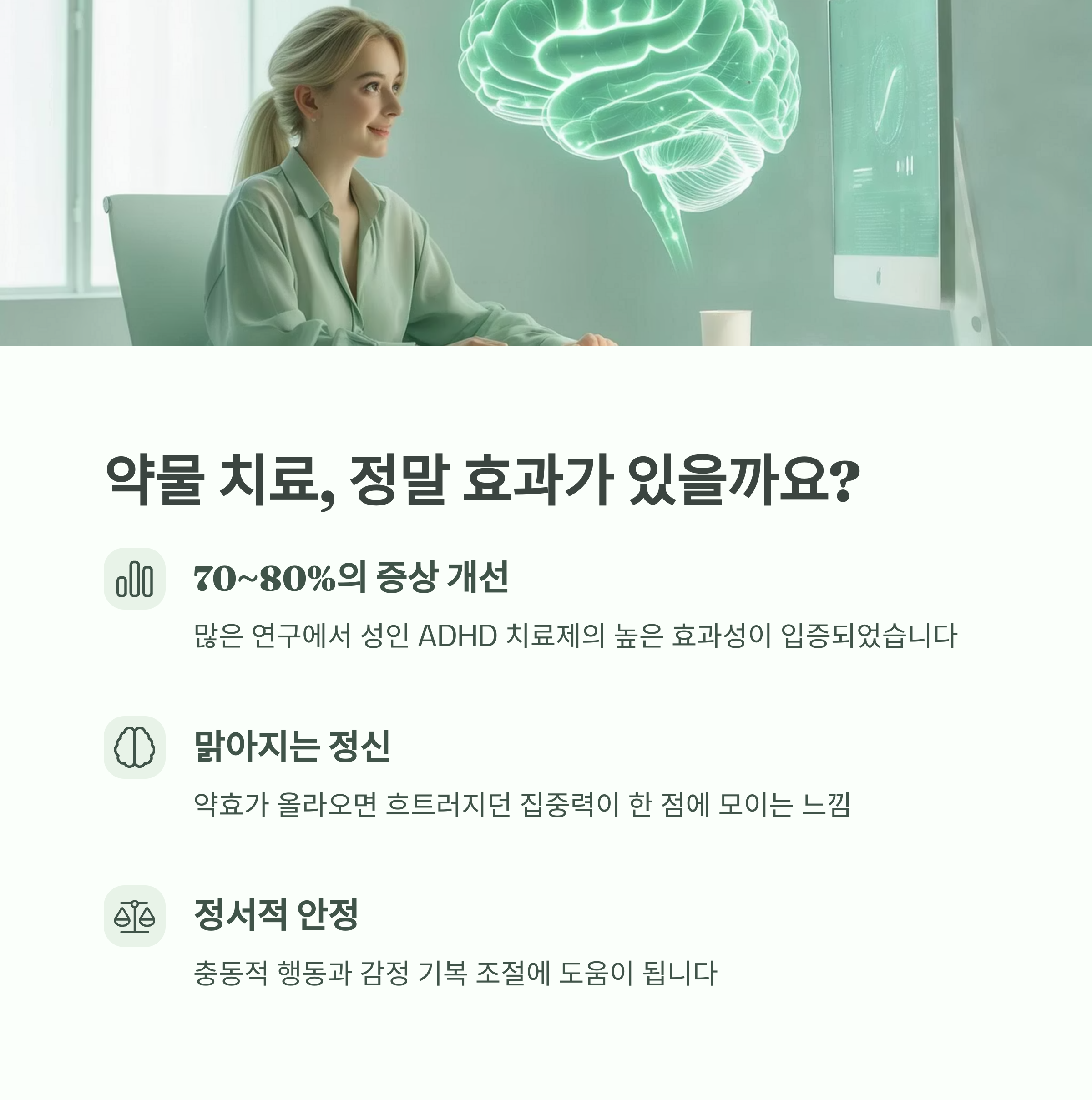 치료 시작 전에는 솔직히 반신반의했어요. ‘정말 약 먹으면 집중이 될까?’ 그런데요, 확실히 달랐습니다. 약효가 올라오면 머리가 맑아지고, 흐트러지던 집중력이 한 점에 모이는 느낌? 모든 사람에게 똑같이 작용하진 않지만, 많은 연구에서 성인 ADHD 치료제는 70~80%의 증상 개선 효과가 있다고 해요.