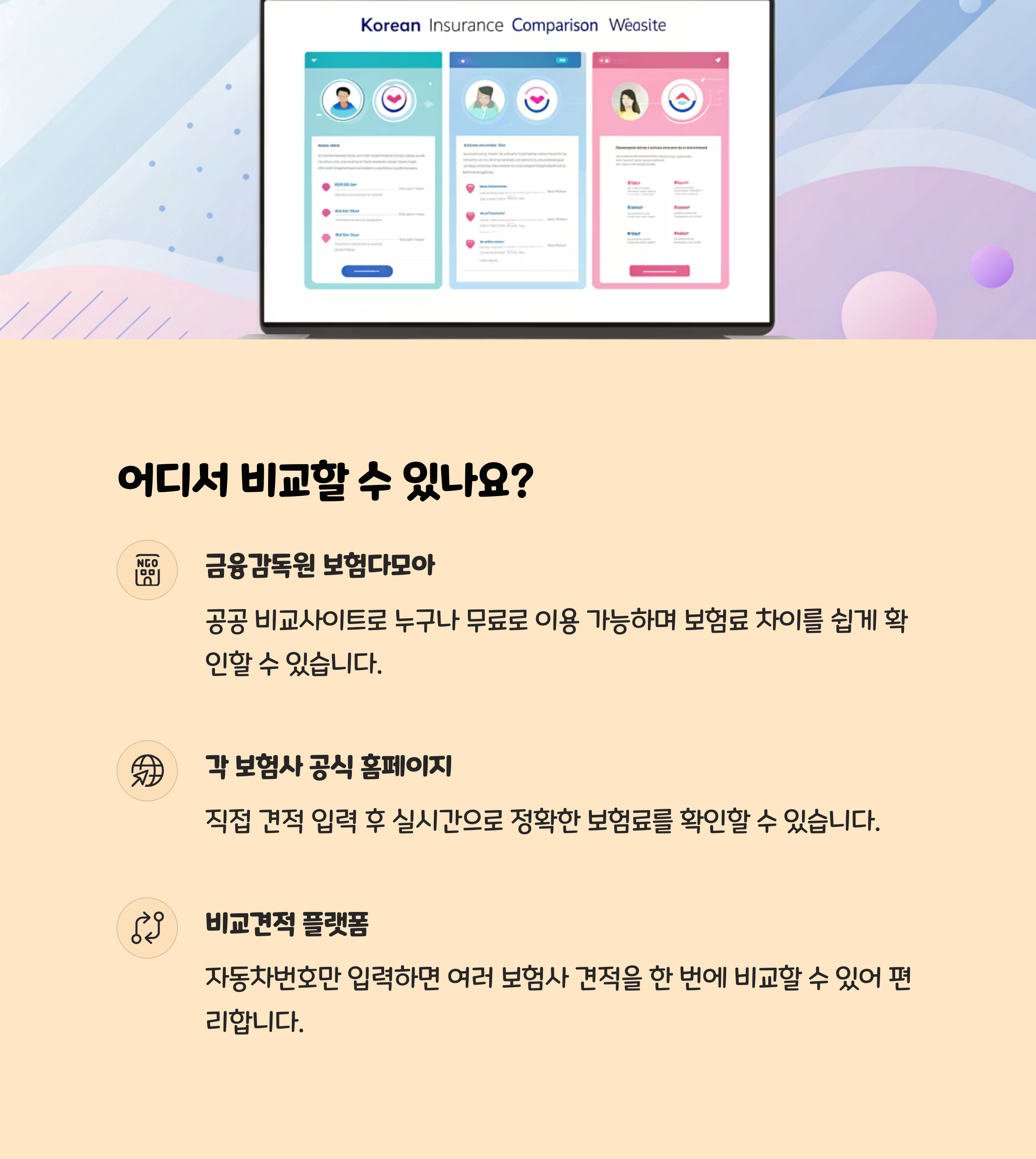 - 비교견적 플랫폼: 자동차번호만 입력하면 여러 보험사 견적을 한 번에!