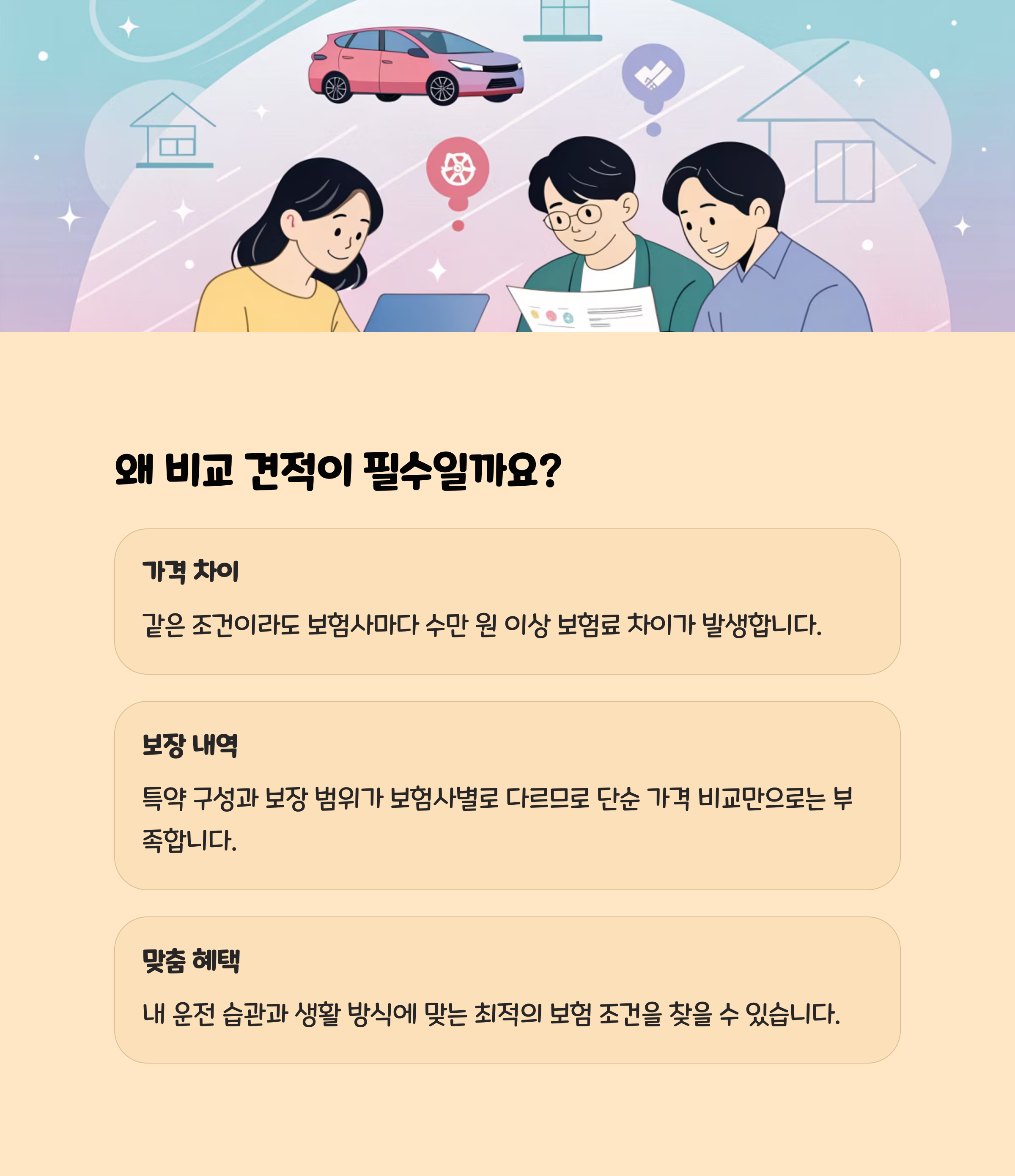 자동차보험 가입을 앞두고 있다면, 보험료를 아끼는 가장 좋은 방법은 ‘비교 견적’입니다. 각 보험사의 조건을 비교하고, 나에게 맞는 혜택을 꼼꼼히 따져보세요.