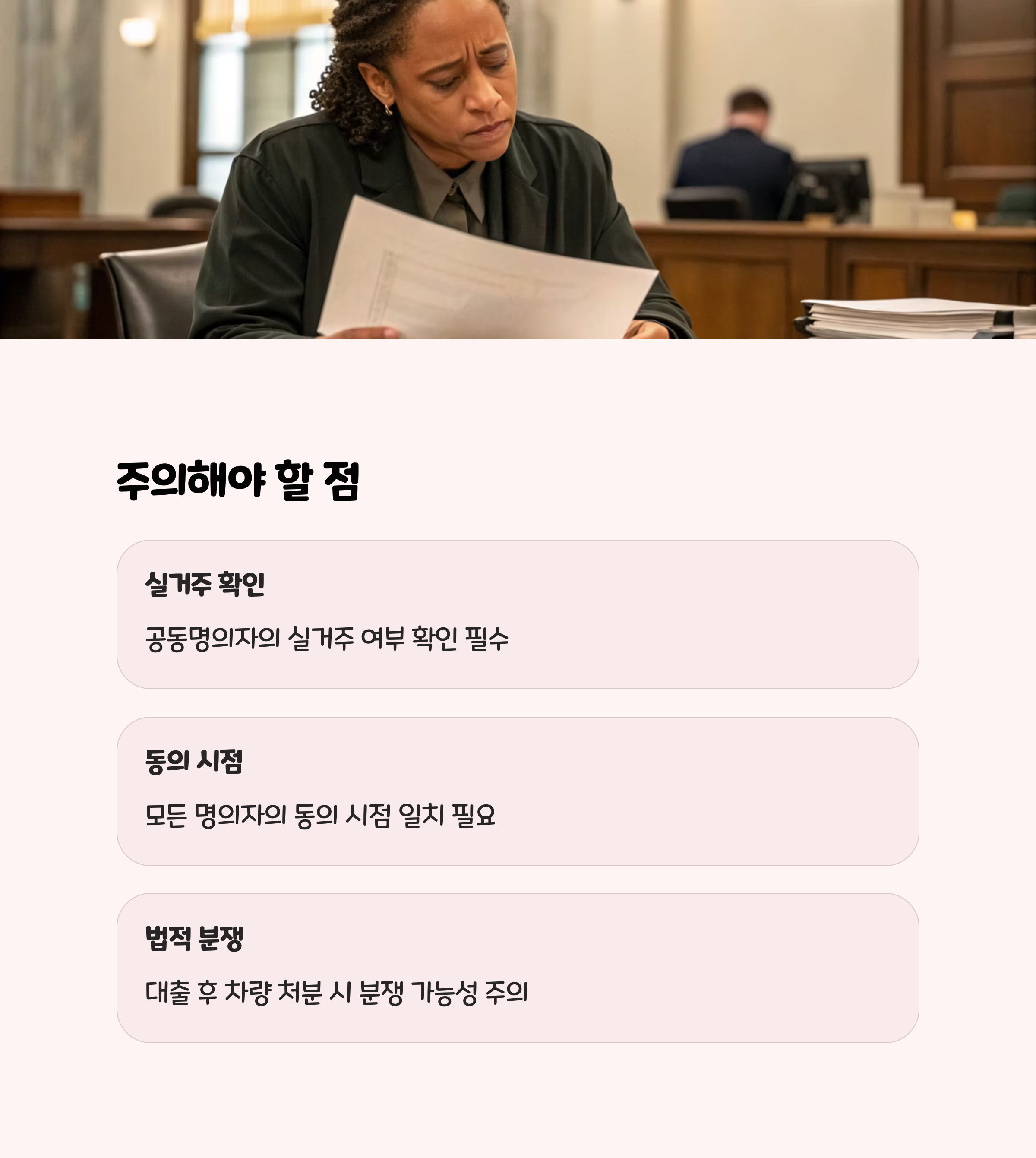 공동명의자의 실거주 여부, 동의 시점, 서류 유효기간을 반드시 확인해야 하며