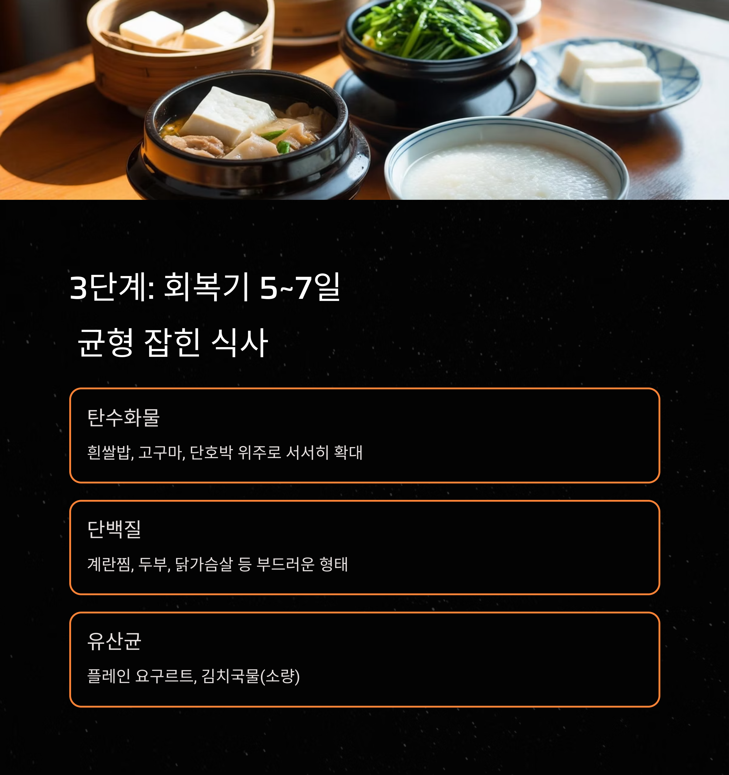 2단계: 증상 완화 후 2~3일 – ‘부드러운 식사’로 점진적 회복