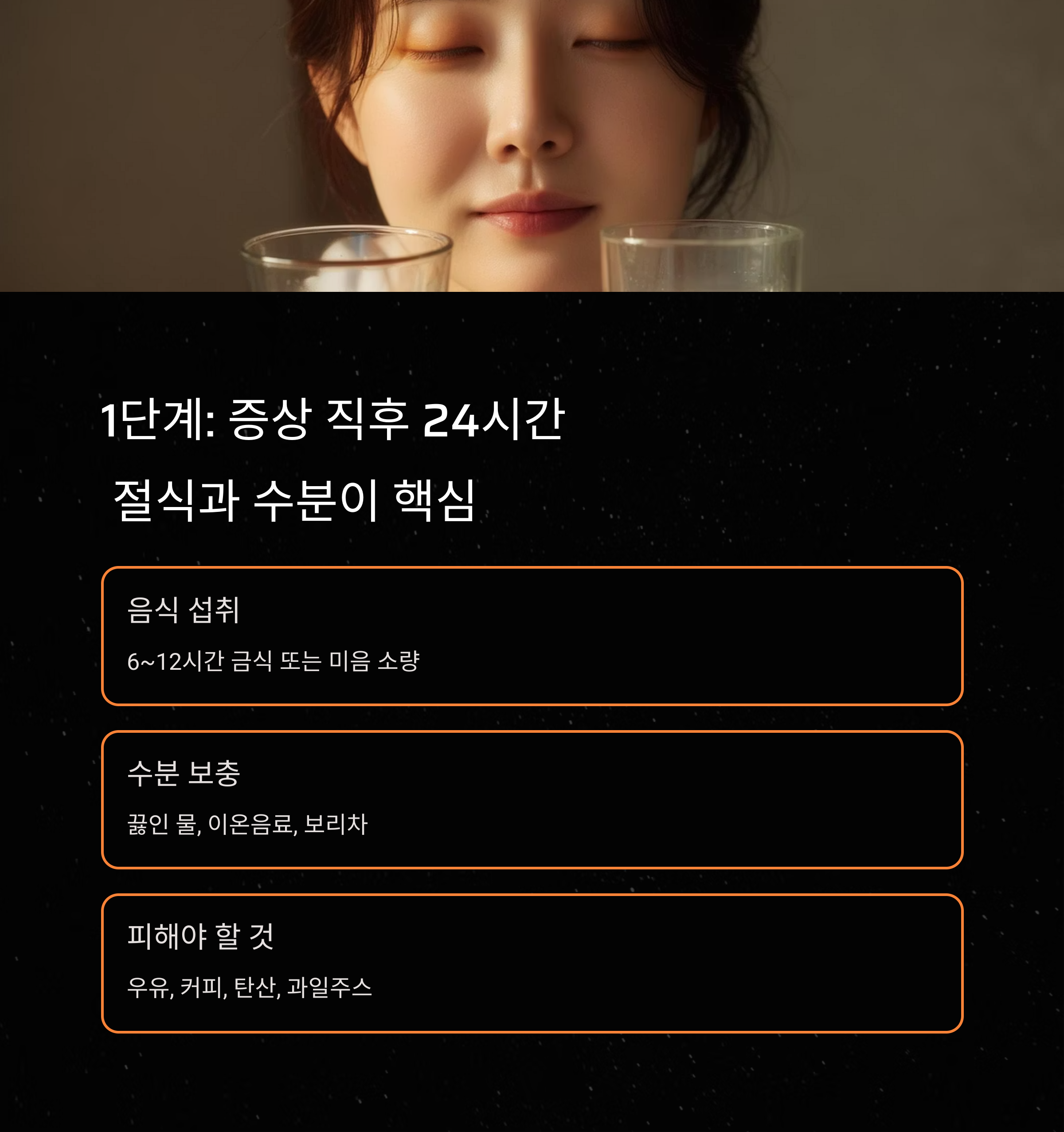 1단계: 증상 직후 24시간 – ‘절식과 수분’이 핵심