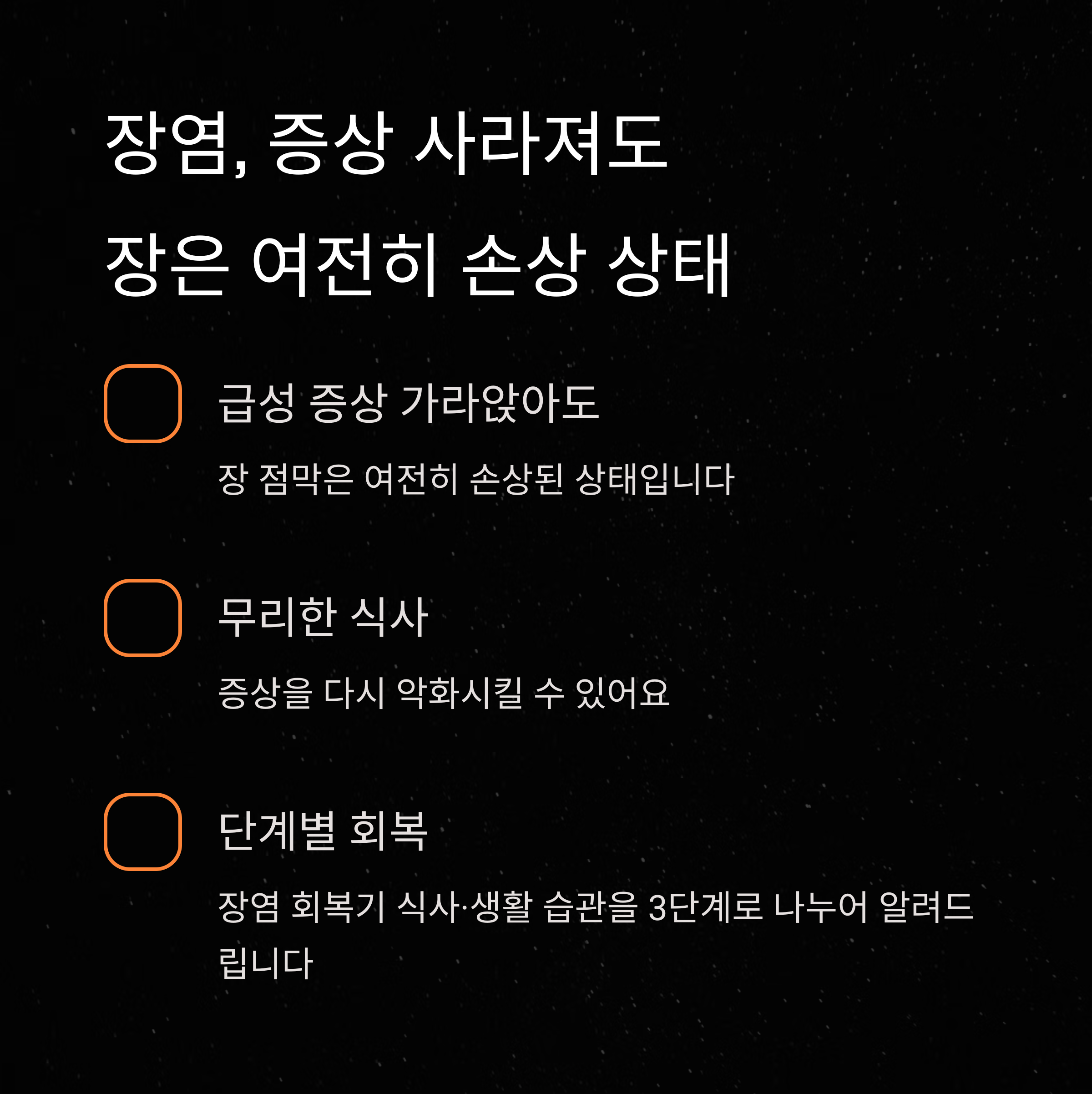 회복기를 어떻게 보내느냐에 따라 재발과 장 건강이 갈립니다.
