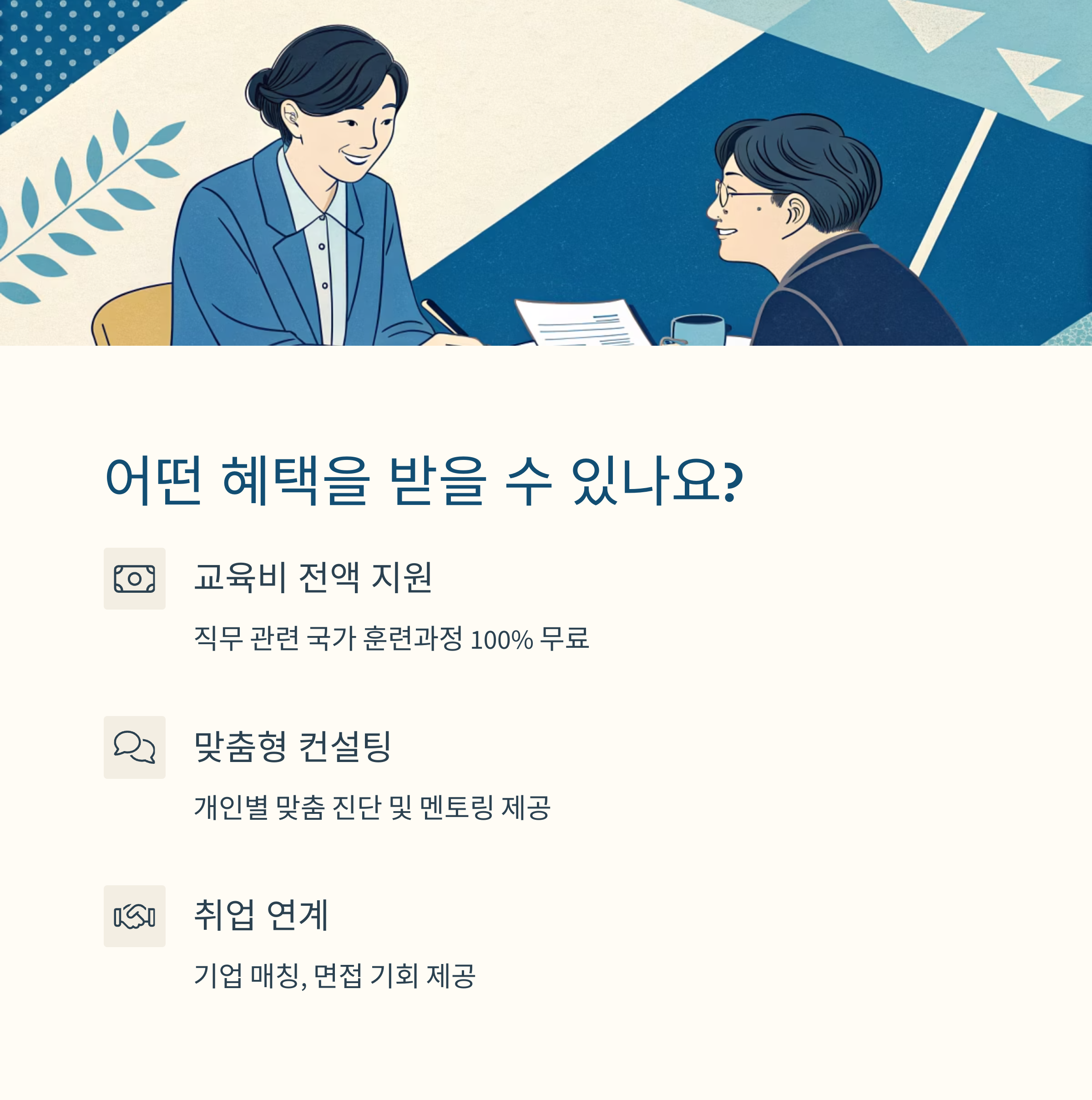 많은 분들이 이 제도를 통해 제2의 커리어를 시작했어요. 실제 후기를 보면 ‘정말 도움 됐다’는 말이 많죠. 가장 많이 들리는 팁은 이거예요.