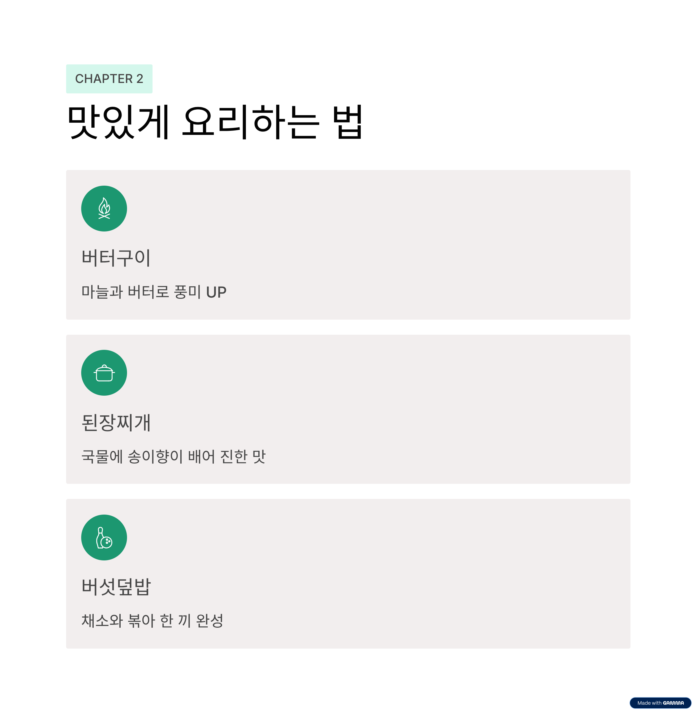 | 요리법 | 특징 |