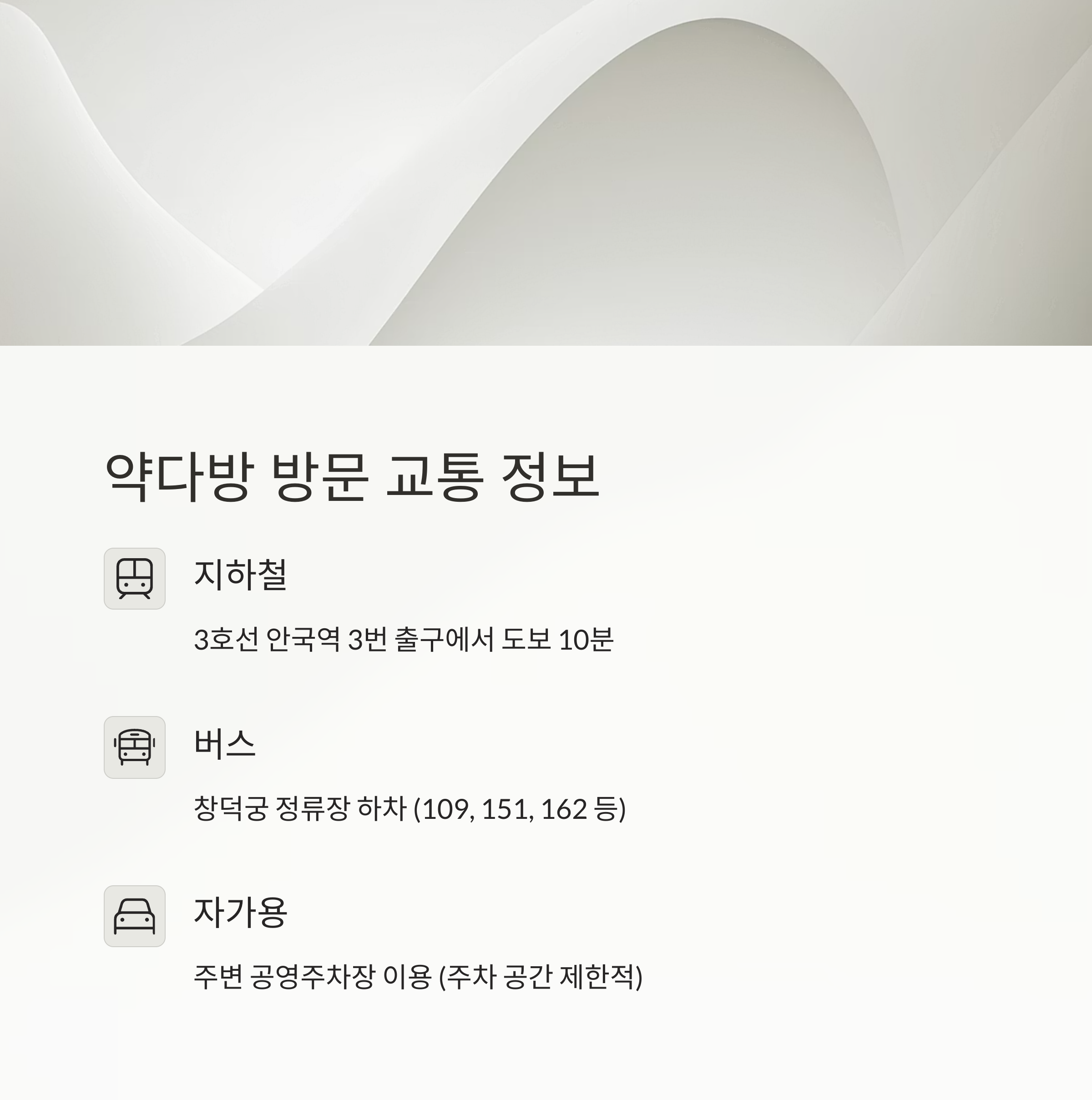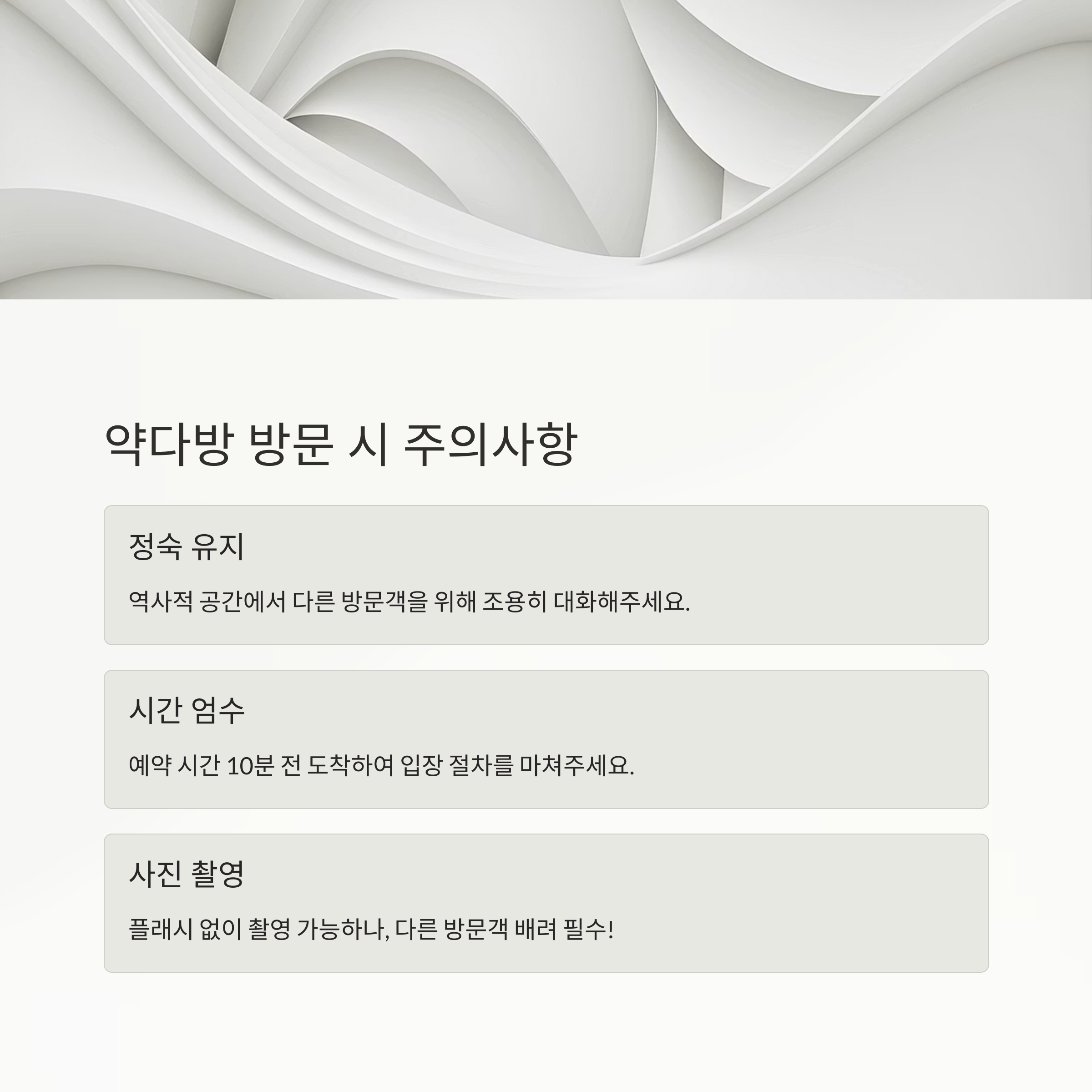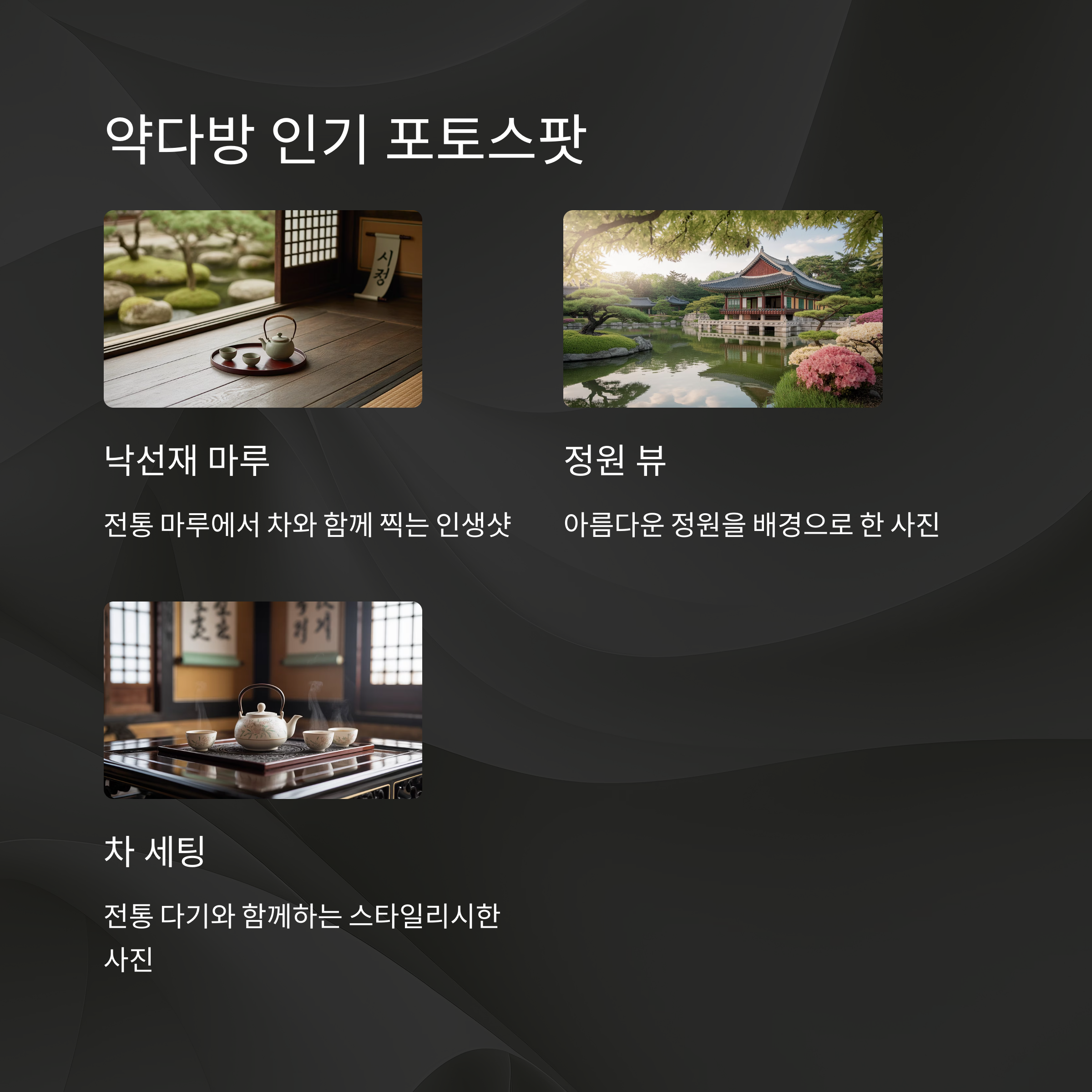 약다방을 방문했다면, 주변 명소도 놓치지 마세요! 아래 리스트 참고해서 하루 코스로 짜보는 것도 추천해요.