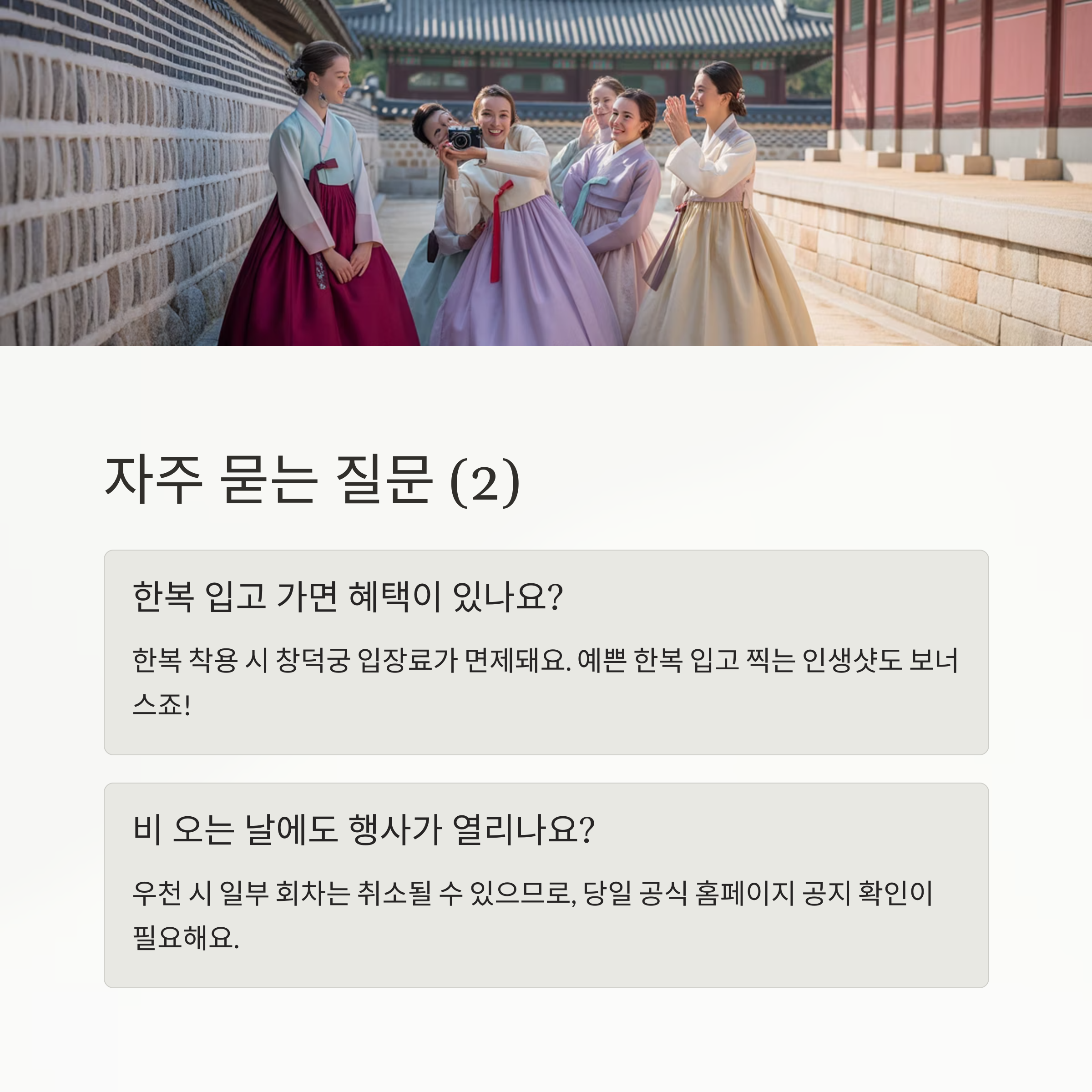 | 복장 팁 | 한복 착용 시 무료입장 가능 (한복대여 추천!) |