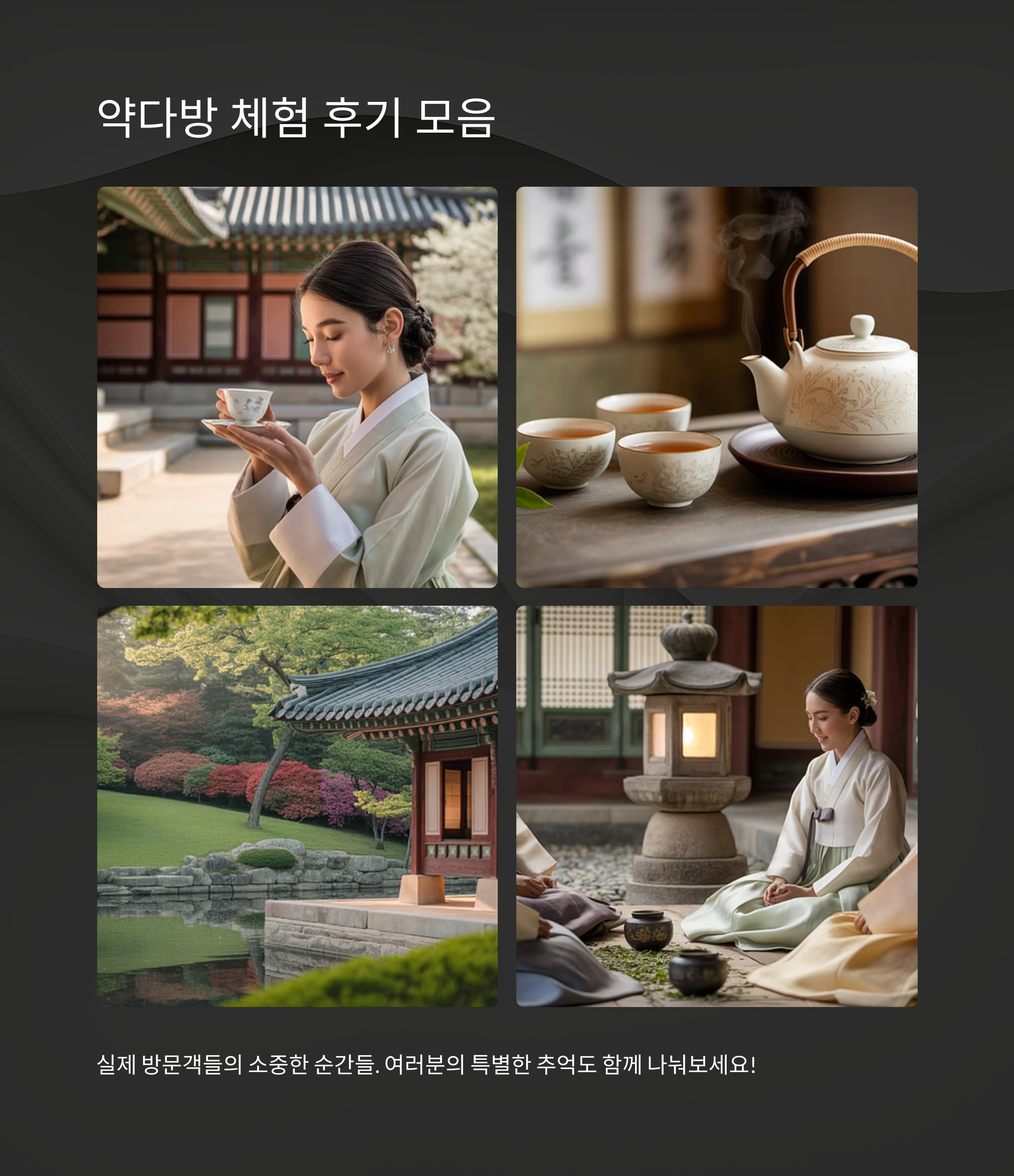 안녕하세요 여러분! 제가 최근에 정말 색다른 경험을 했던 곳이 있어서 이렇게 글을 남기게 되었어요. 바로 창덕궁에서 열리는 '약다방'이라는 행사인데요. 전통 궁궐의 아름다움과 함께 따뜻한 약차를 즐길 수 있는 아주 특별한 시간이었답니다. 평소에 카페나 티하우스를 즐겨 찾는 저로서는, 이런 공간에서 마시는 차는 정말 색다르게 다가왔어요. 한 잔의 차가 이렇게 깊은 울림을 줄 줄이야... 솔직히 감동이었어요. 지금부터 그 여운 가득한 순간들을 하나하나 풀어볼게요.