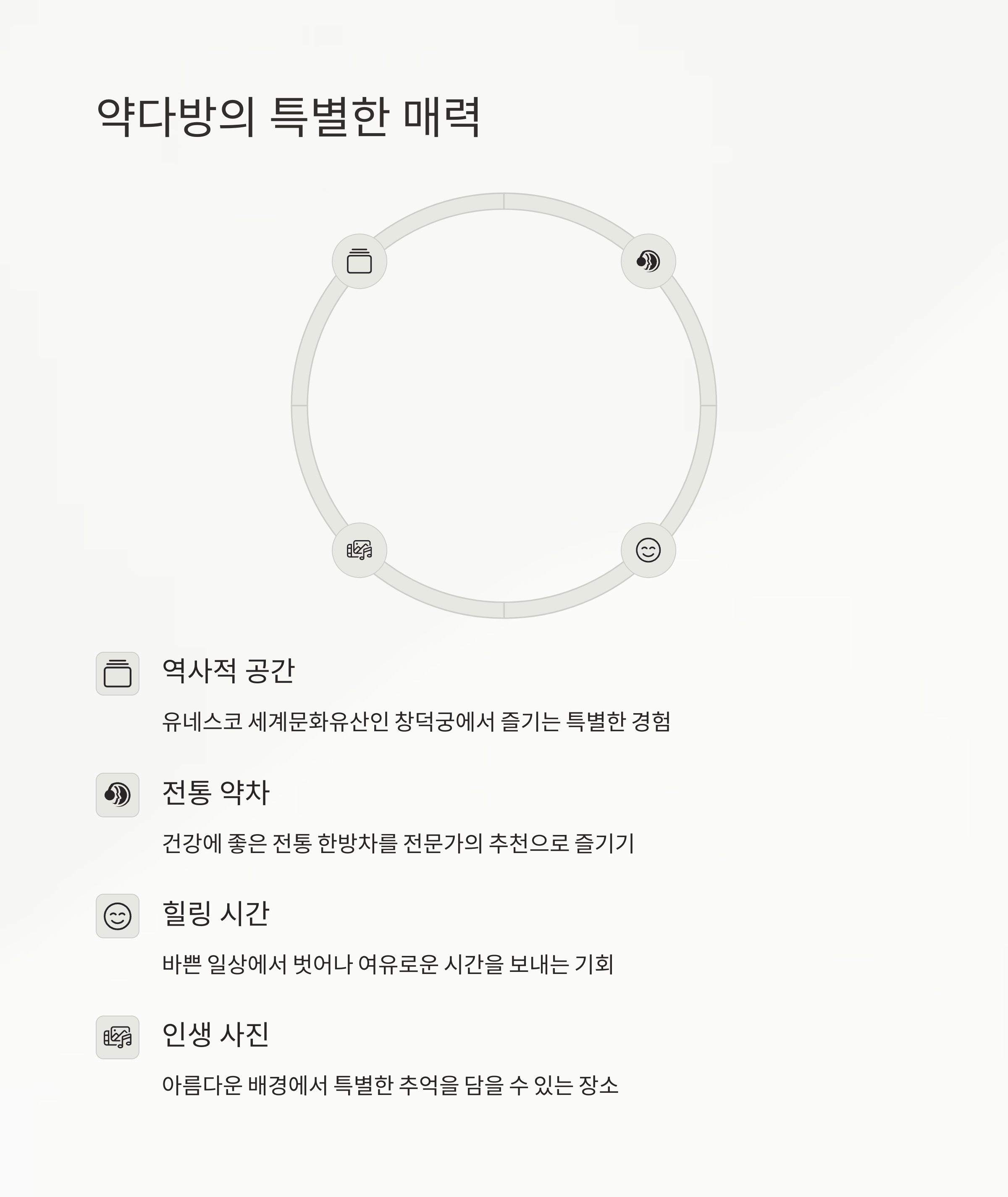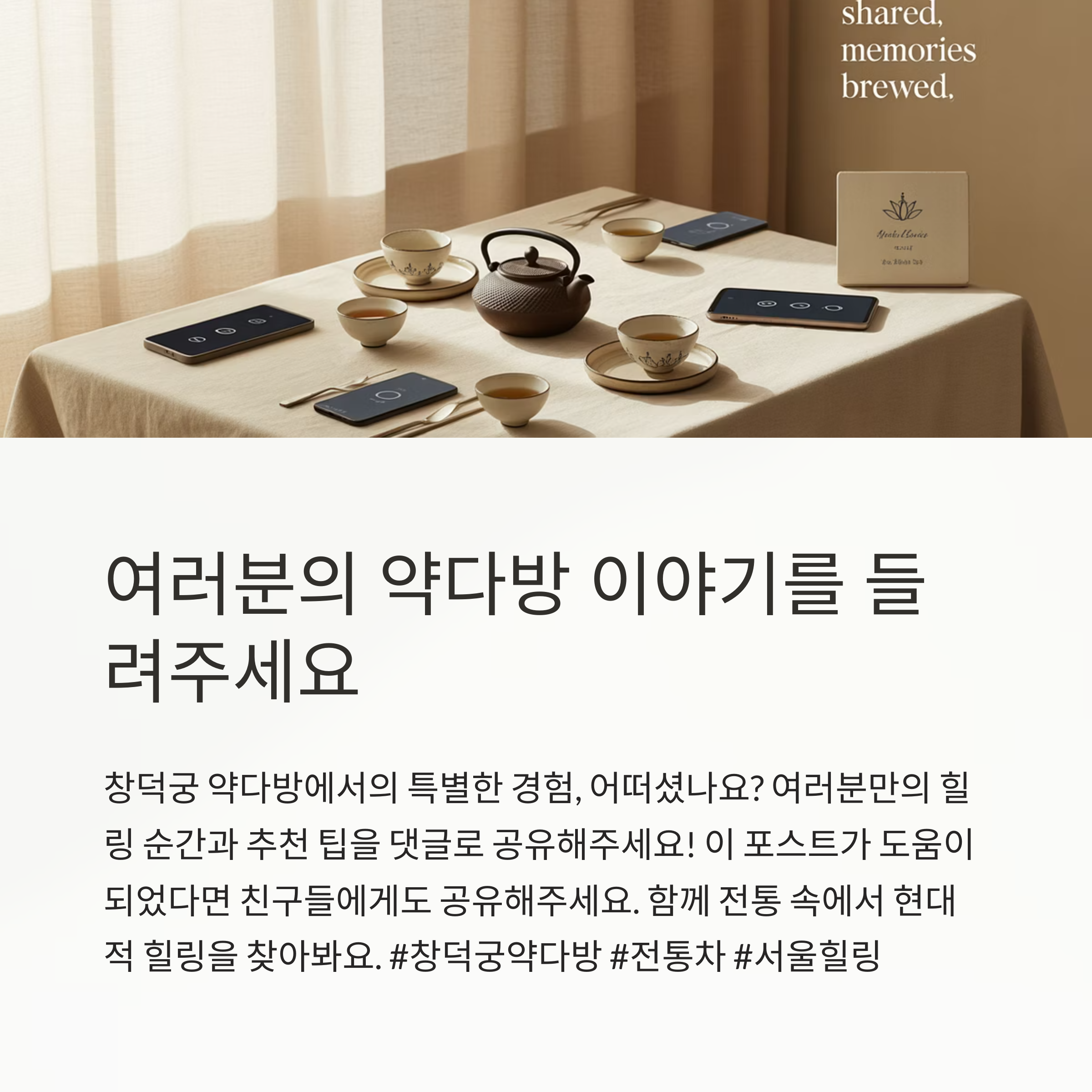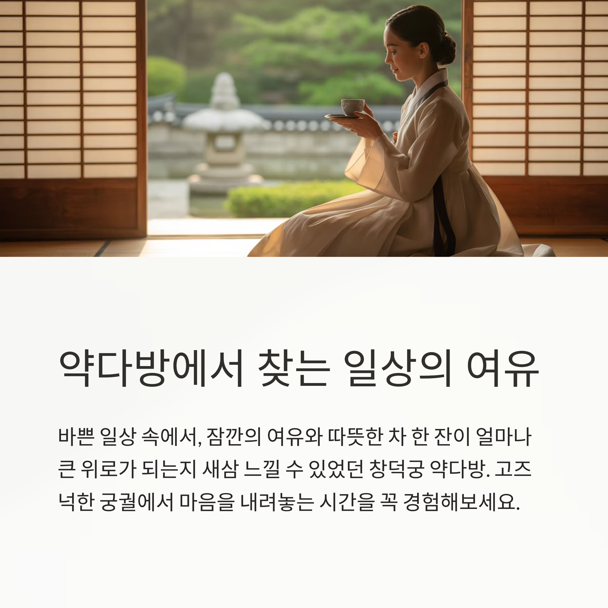 시간이 느리게 흐르는 곳, 창덕궁의 고즈넉한 정취 속에서 마시는 따뜻한 한방차. 당신도 이 특별한 힐링을 경험해보셨나요?