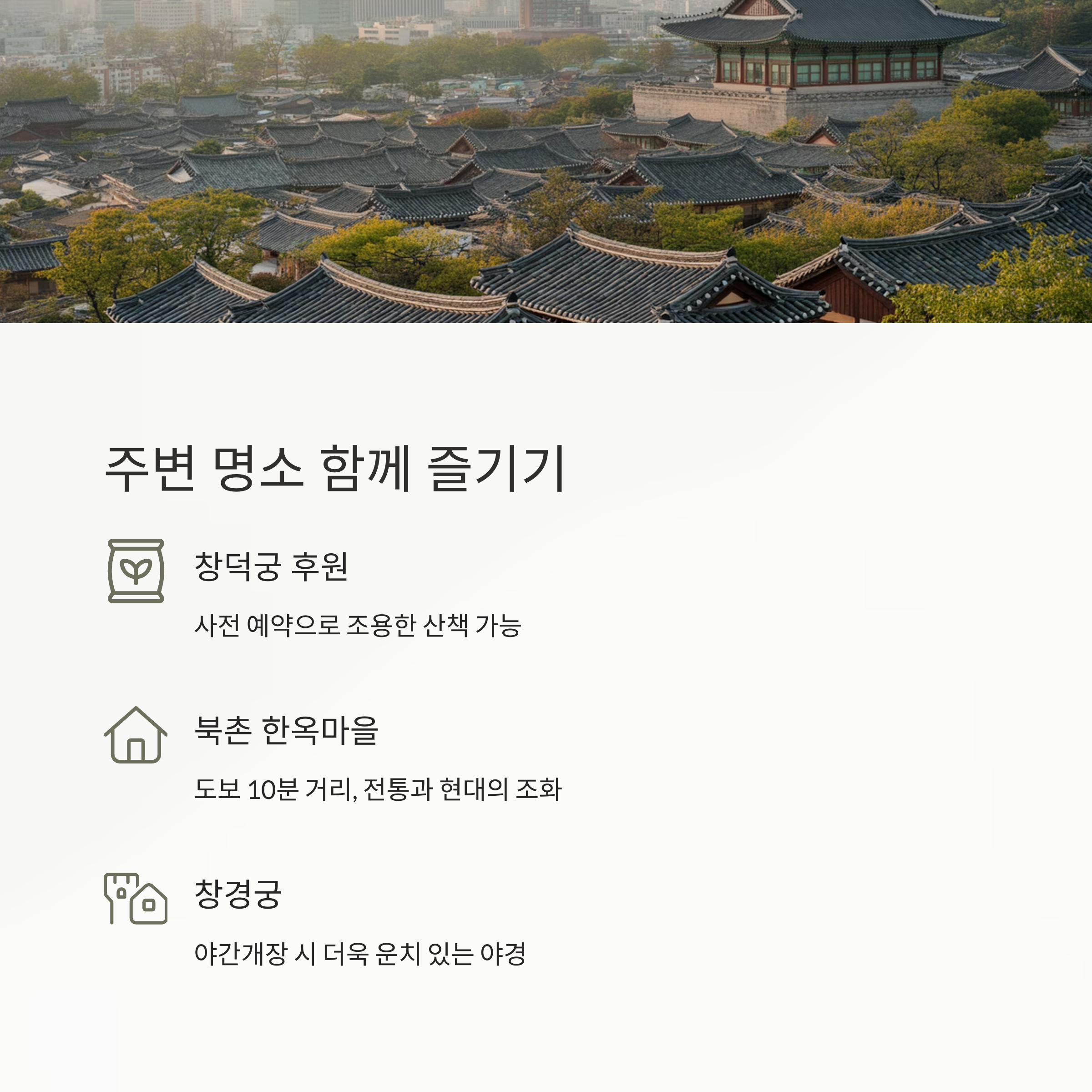 - 북촌 한옥마을 – 도보 10분 거리, 전통과 현대의 조화