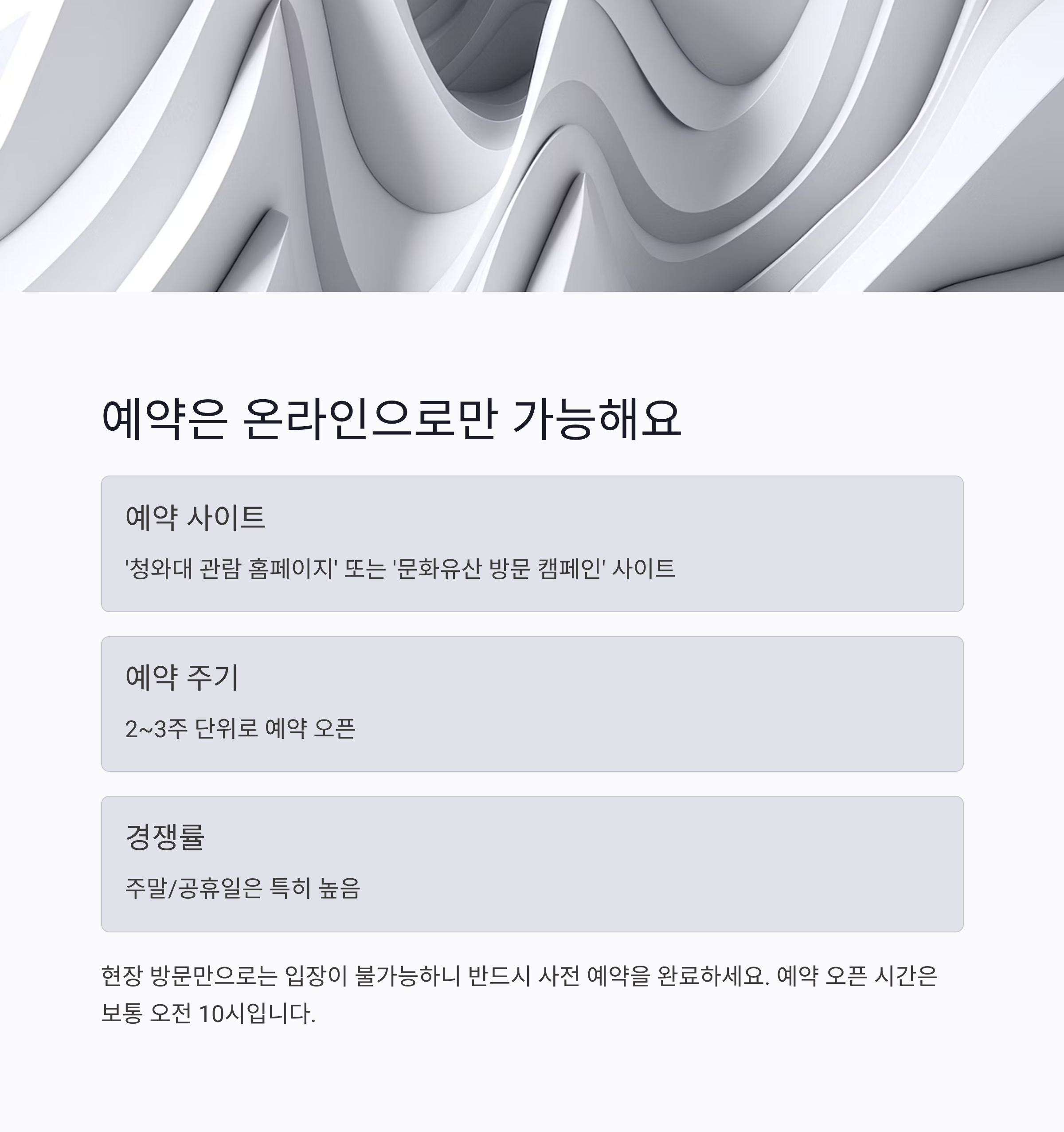 경쟁이 치열한 청와대 예약! 이 꿀팁들 기억해두시면 실패 확률 줄일 수 있어요.