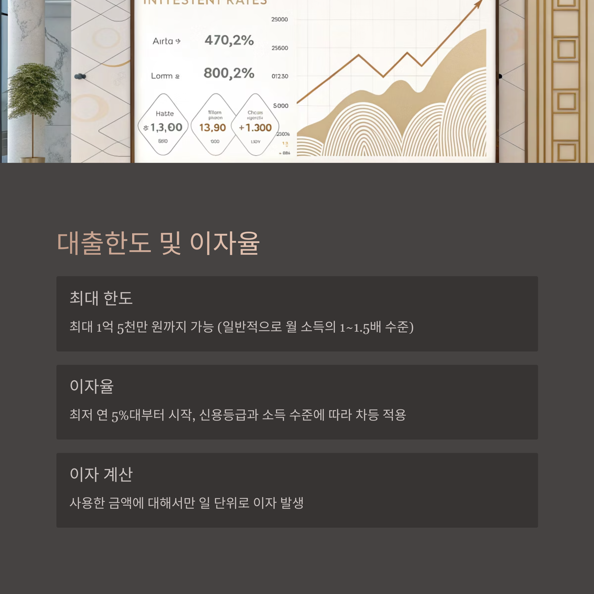 이자율은 최저 연 5%대부터 시작하며, 신용등급과 소득 수준에 따라 차등 적용돼요.