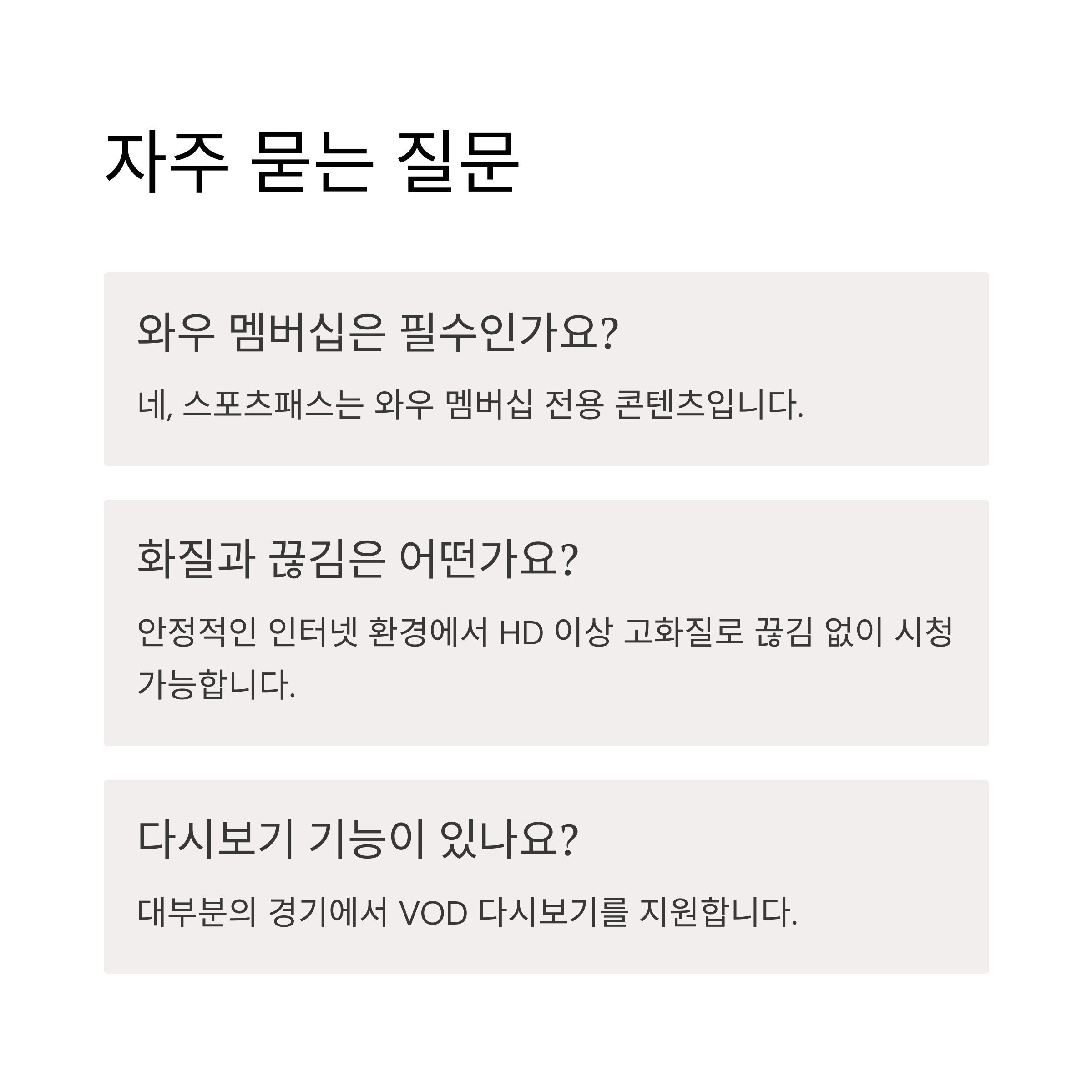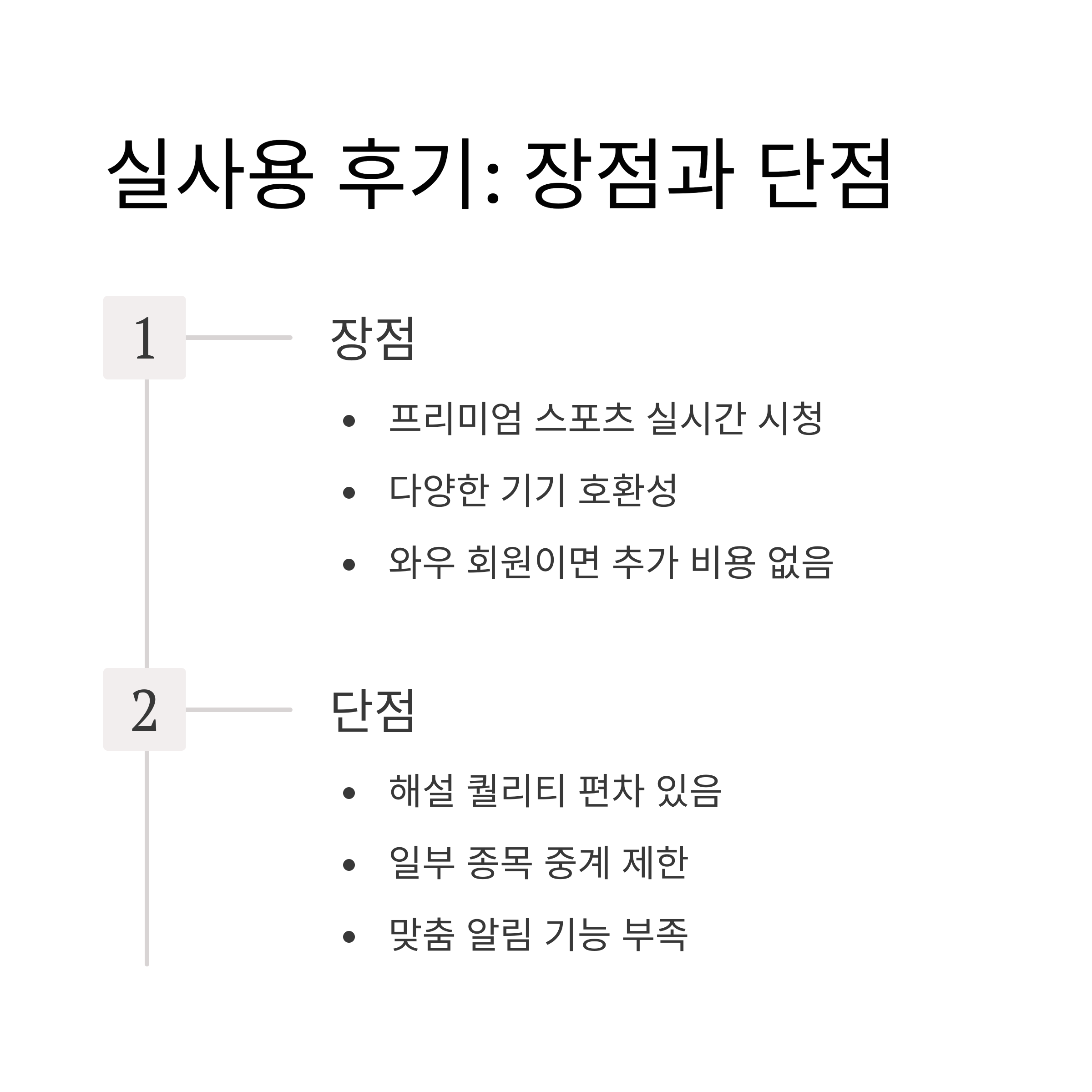 | 프리미엄 스포츠 실시간 시청 가능 | 경기마다 해설 퀄리티 편차 있음 |