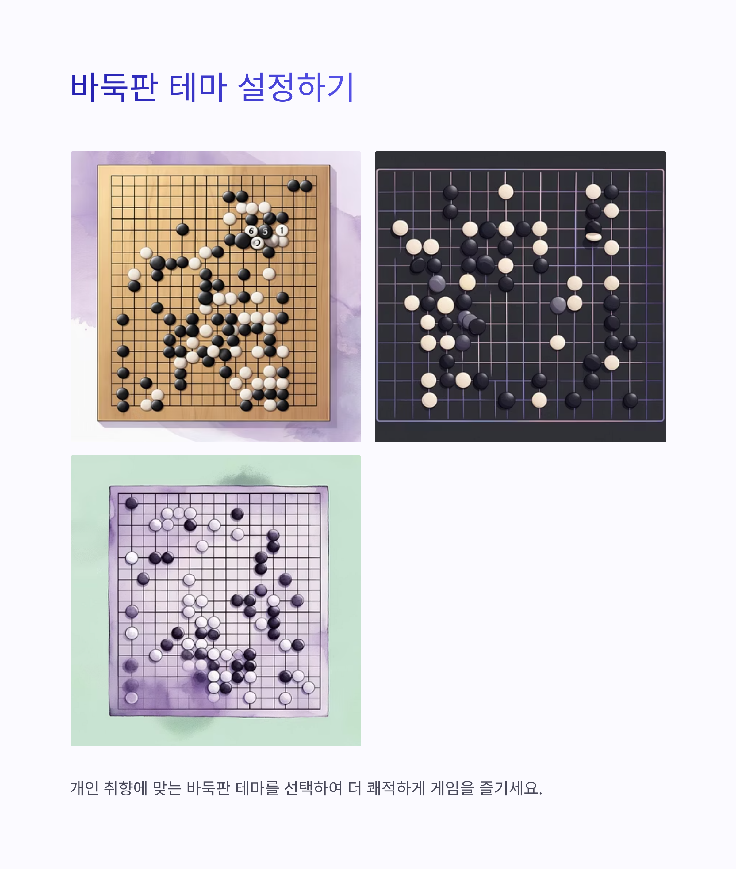| 바둑판 테마 | 기본, 다크모드, 눈 보호 색상 등 선택 가능 |