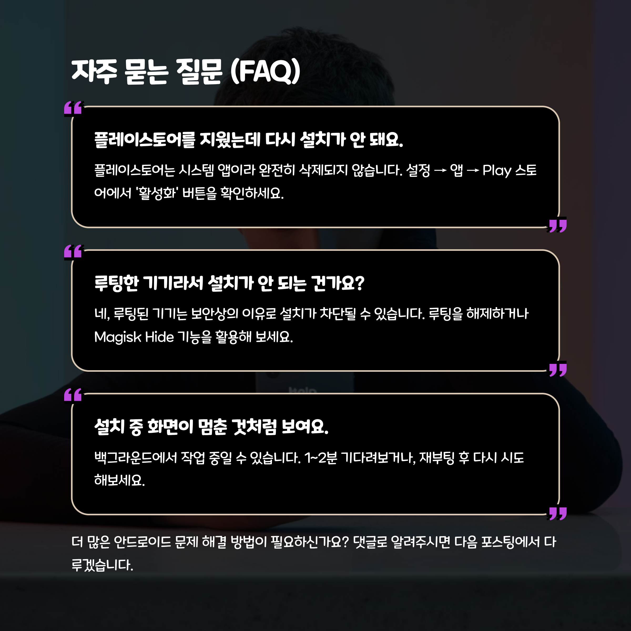 며칠 전, 갑자기 플레이스토어가 사라지더니 재설치를 해도 오류 메시지만 뜨더라고요. 당황해서 이것저것 검색해봤는데, 알고 보니 꽤 많은 사람들이 겪고 있는 문제더라고요. 그래서 저처럼 당황하지 마시라고, 해결법을 정리해봤어요. 오류 뜰 때마다 재부팅만 반복하던 나날은 이제 그만~