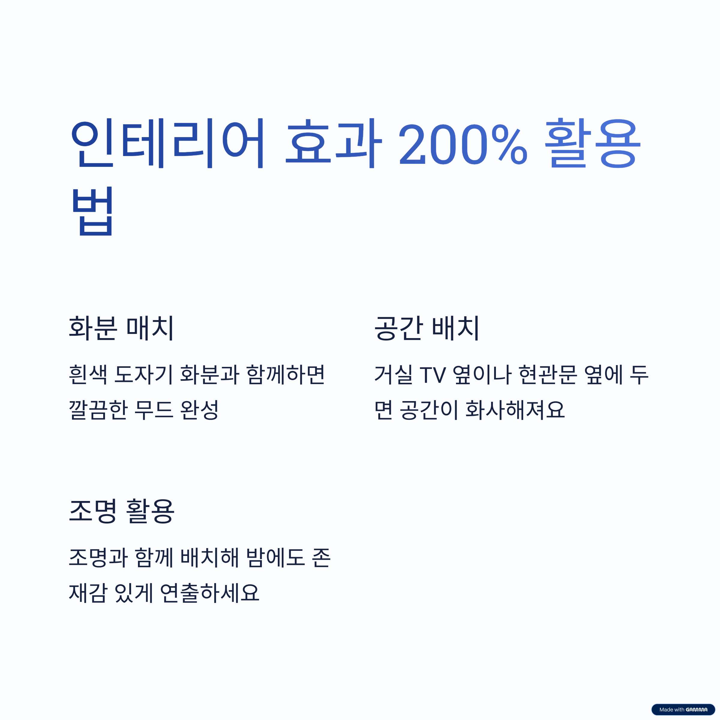 - 거실 TV 옆이나 현관문 옆에 두면 공간이 화사해짐