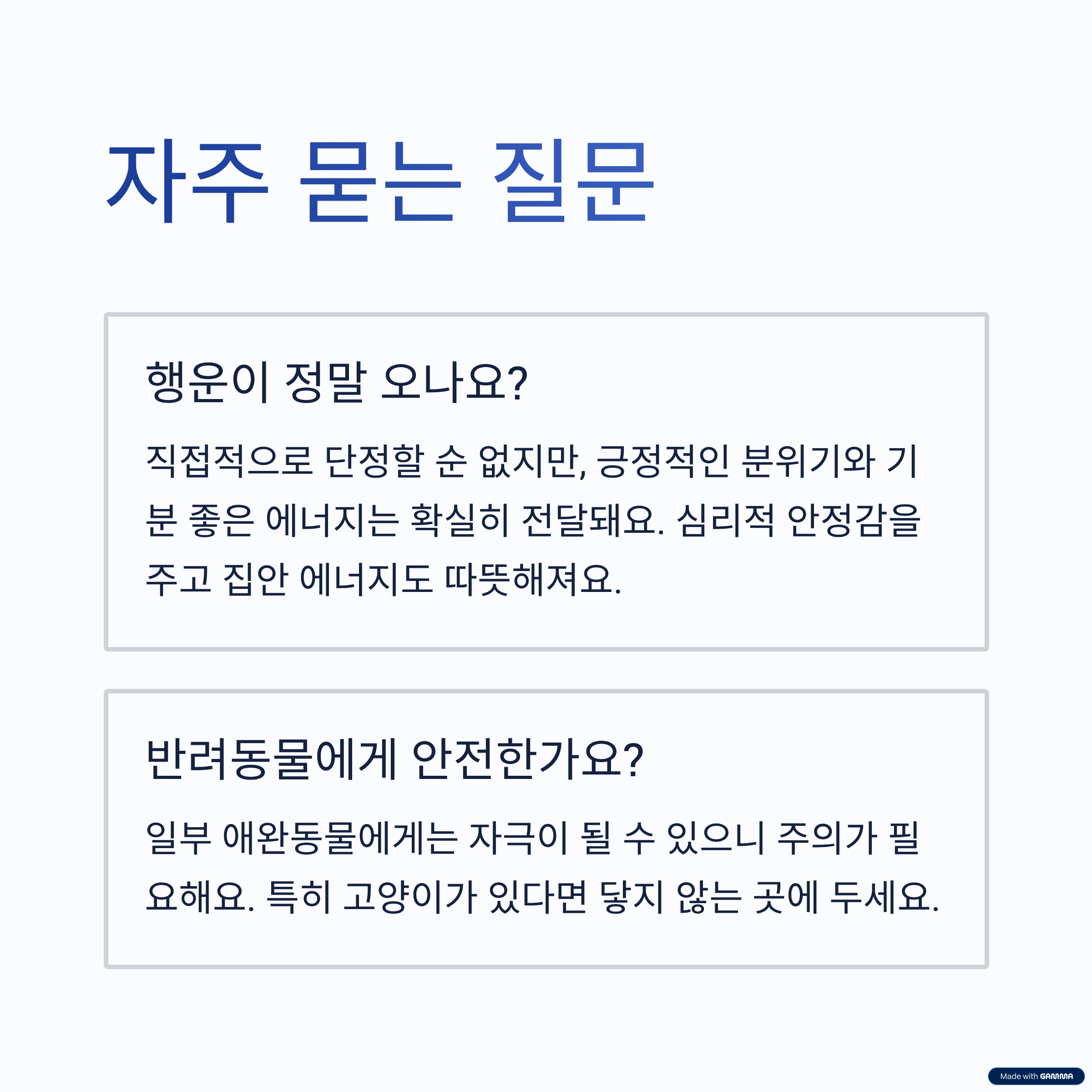 직접적으로 행운이 온다고 단정할 순 없지만, 긍정적인 분위기와 기분 좋은 에너지는 확실히 전달됩니다.
