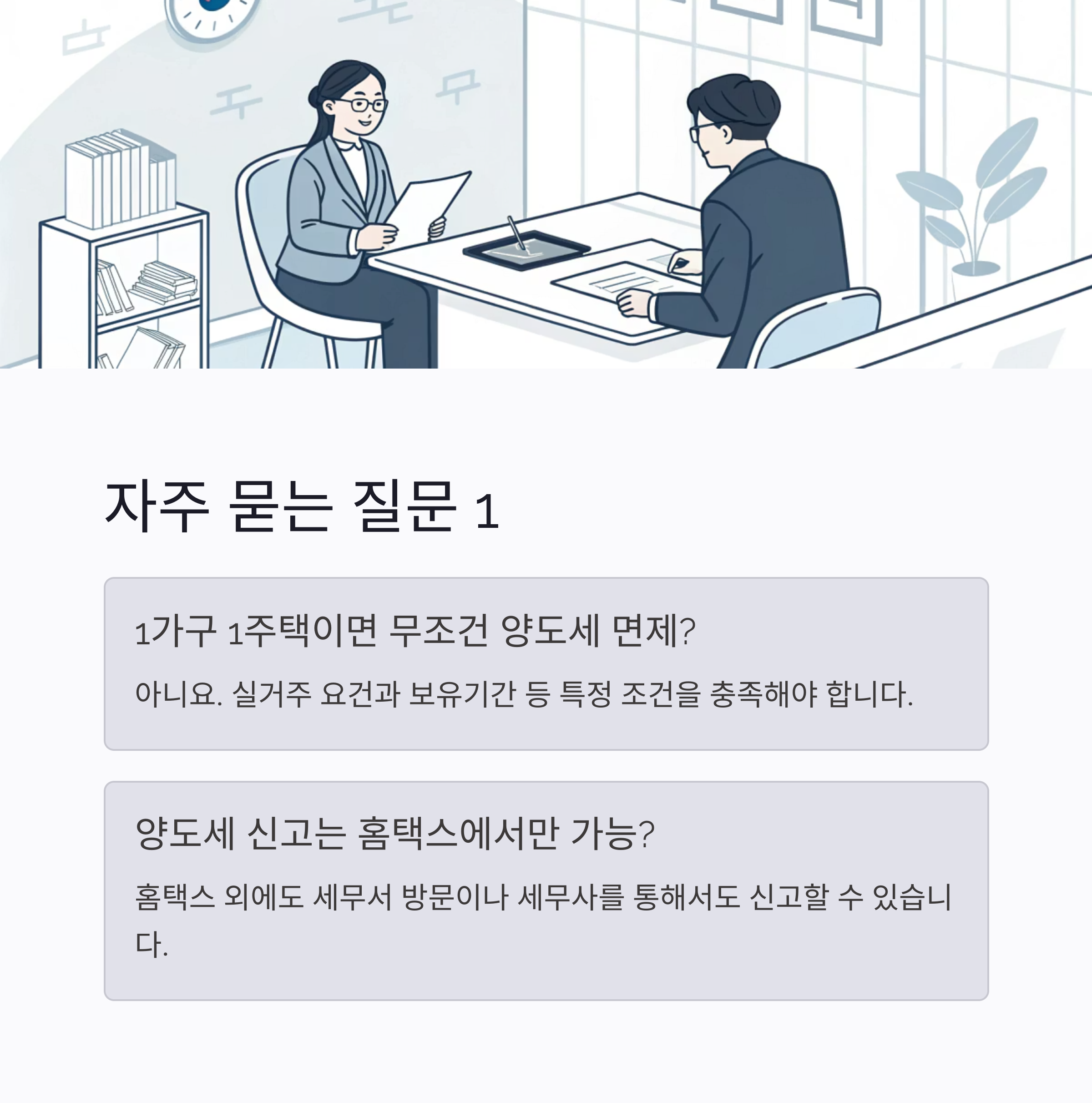 부동산세금, 1가구1주택, 양도소득세, 양도세신고, 주택매도, 비과세조건, 장기보유특별공제, 홈택스신고, 실거주요건, 세무상담